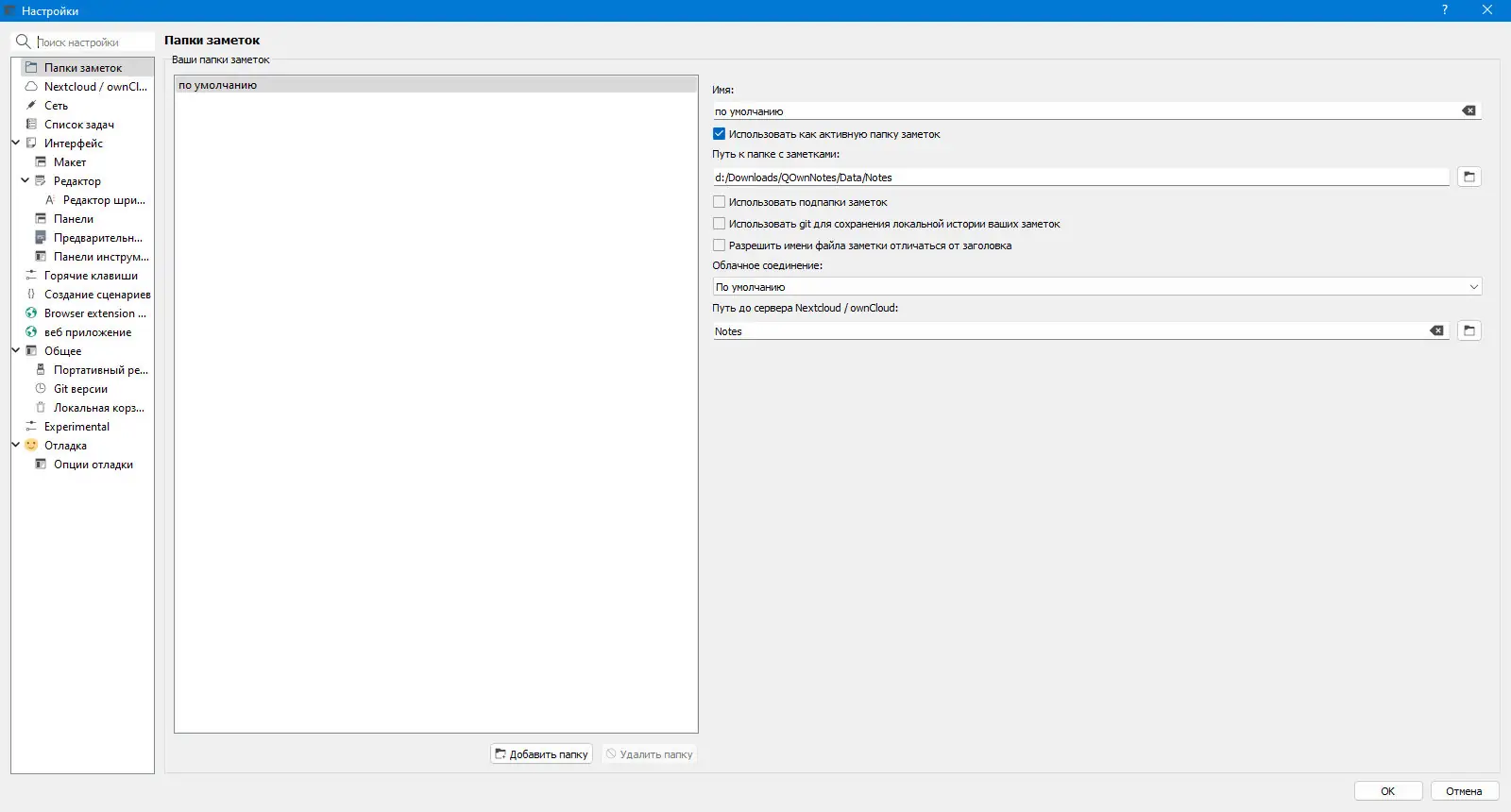 Работа с QOwnNotes