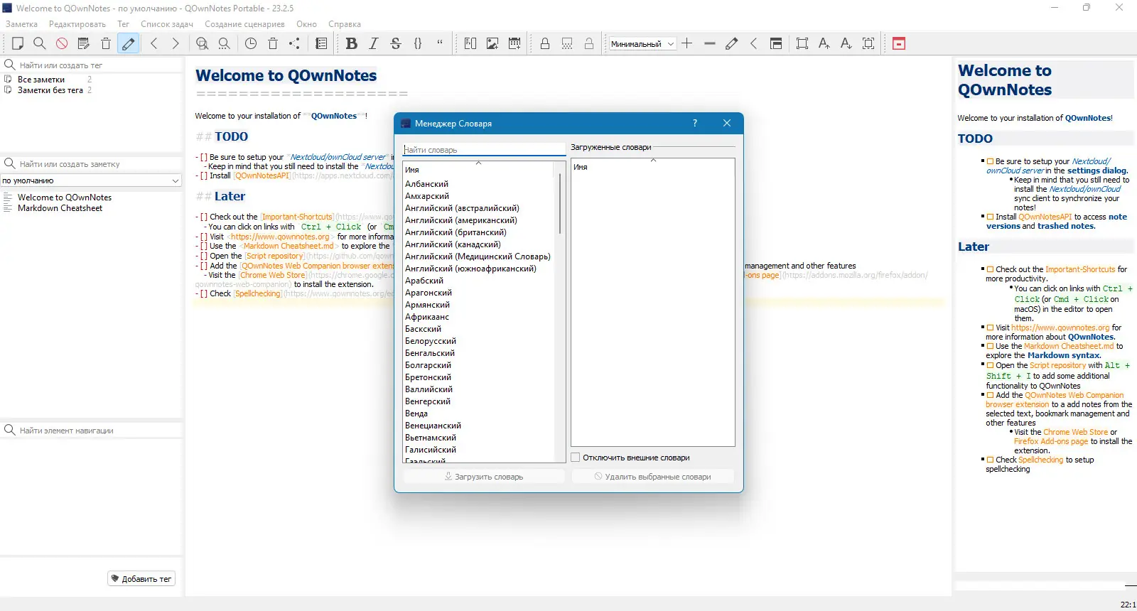 Работа с QOwnNotes