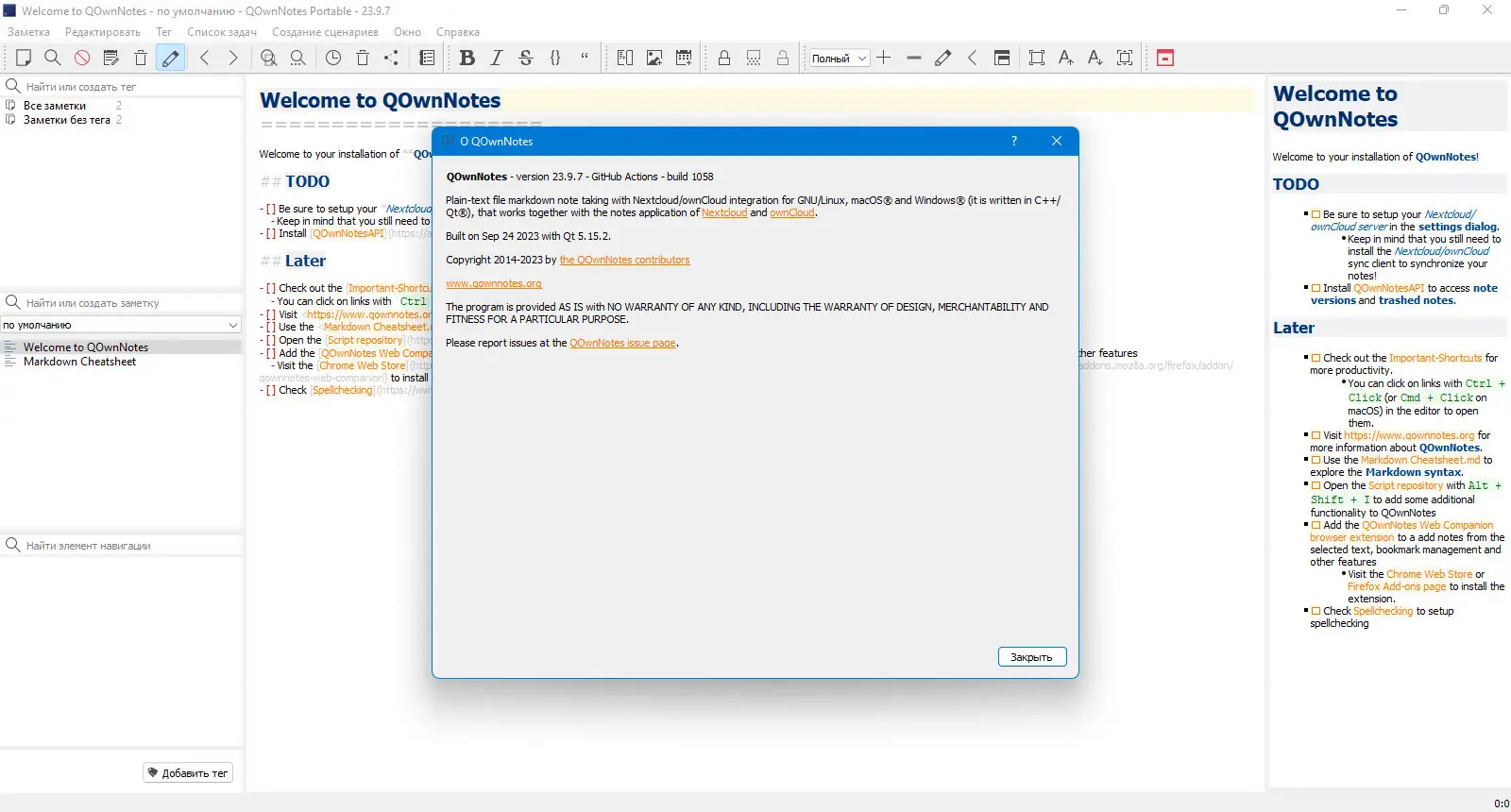 Работа с QOwnNotes