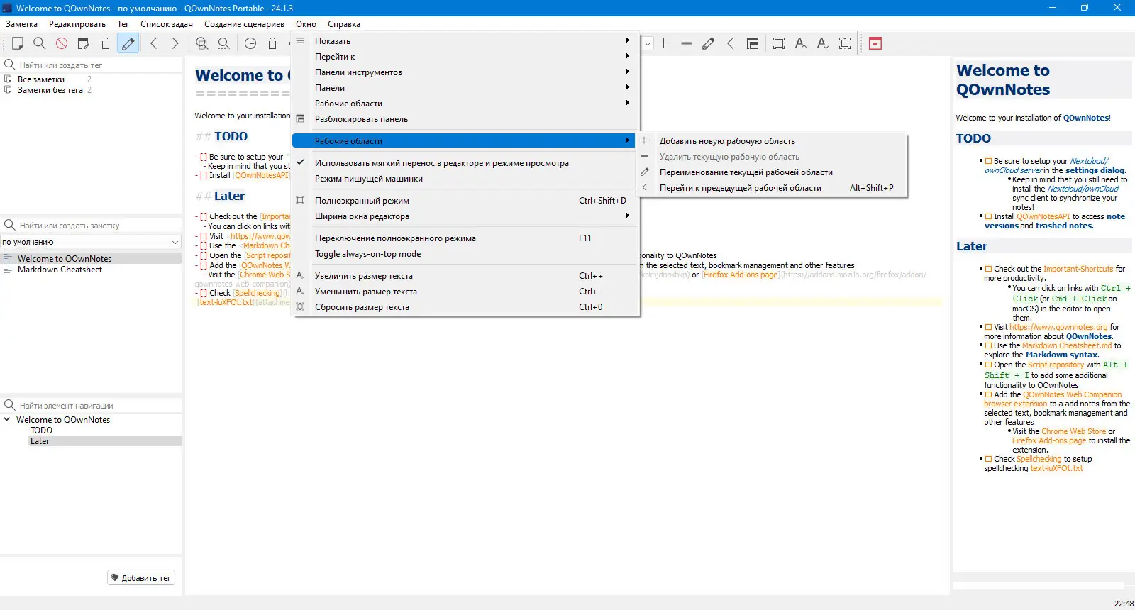 Работа с QOwnNotes