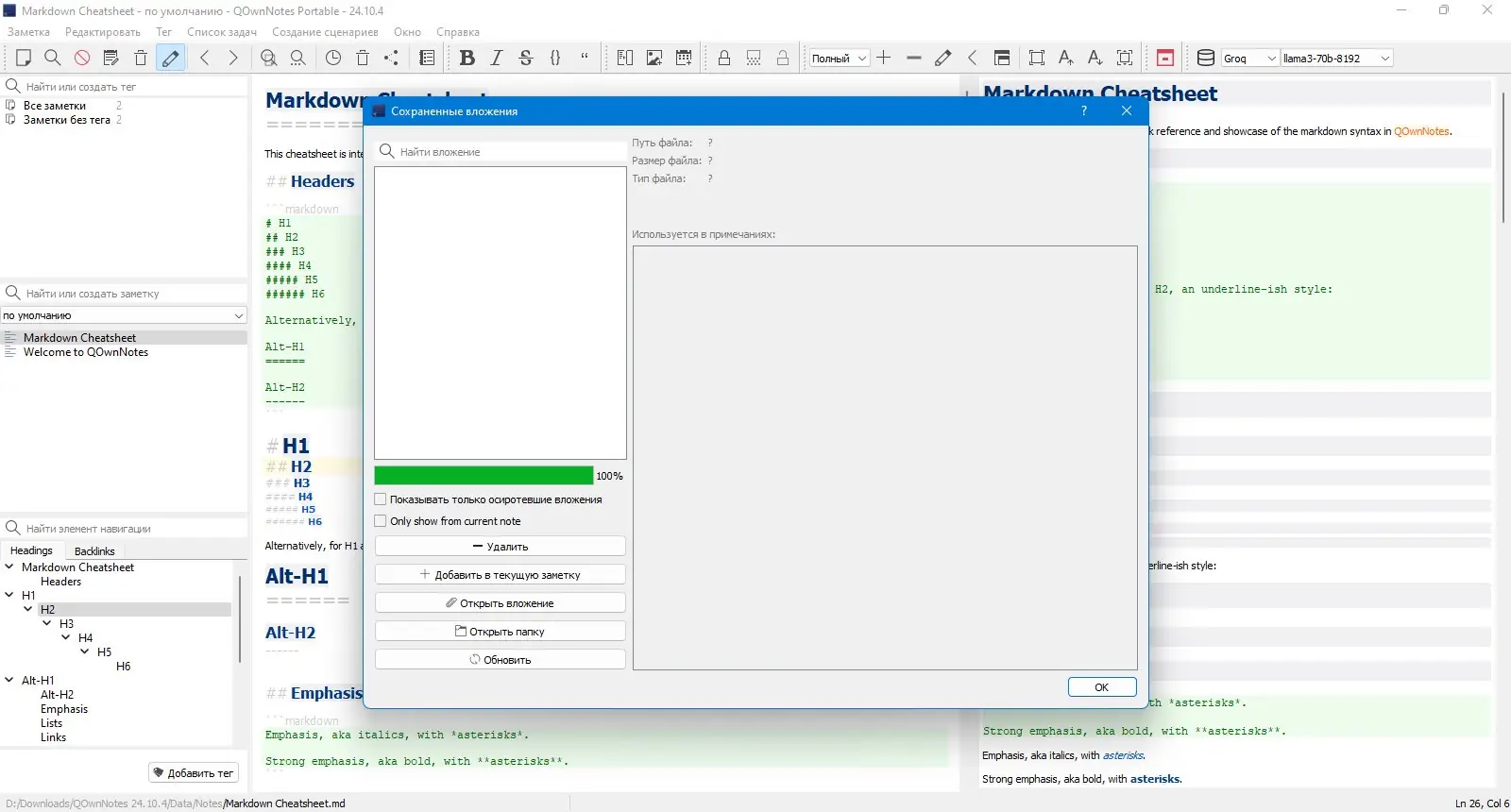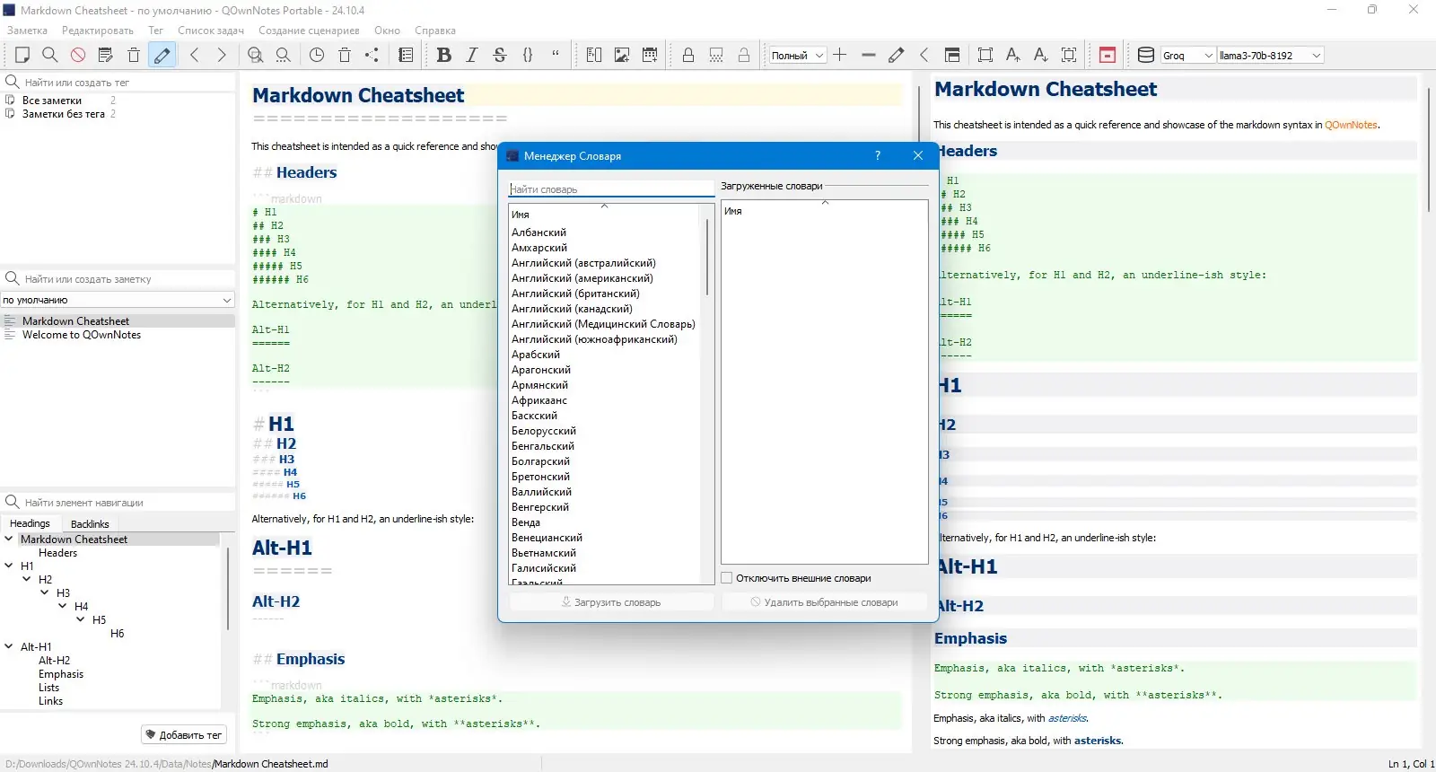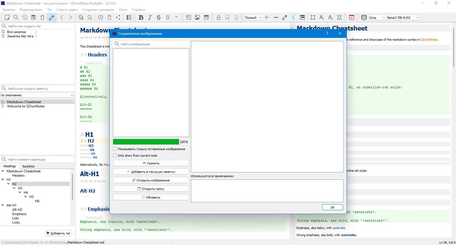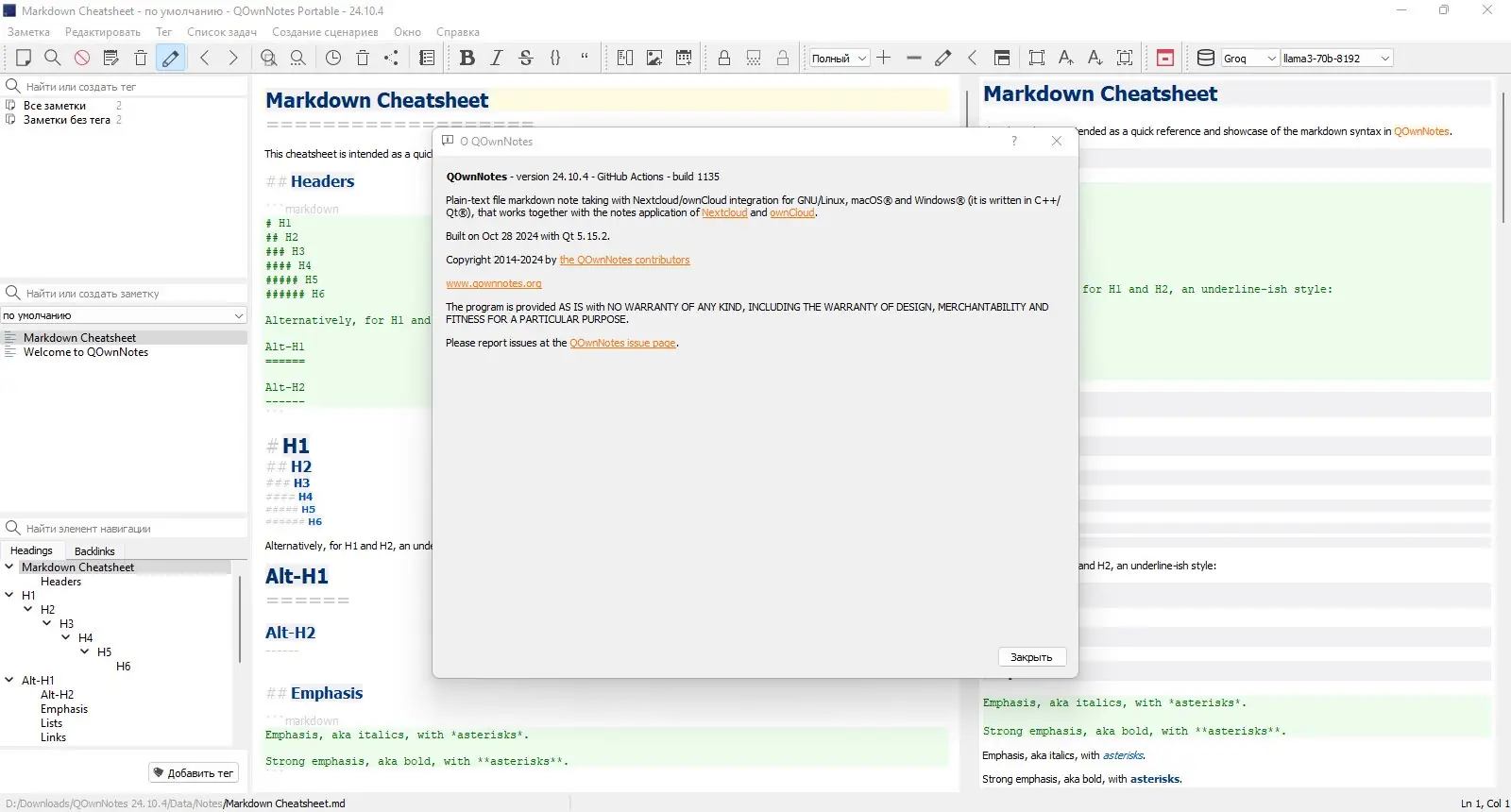 Работа с QOwnNotes
