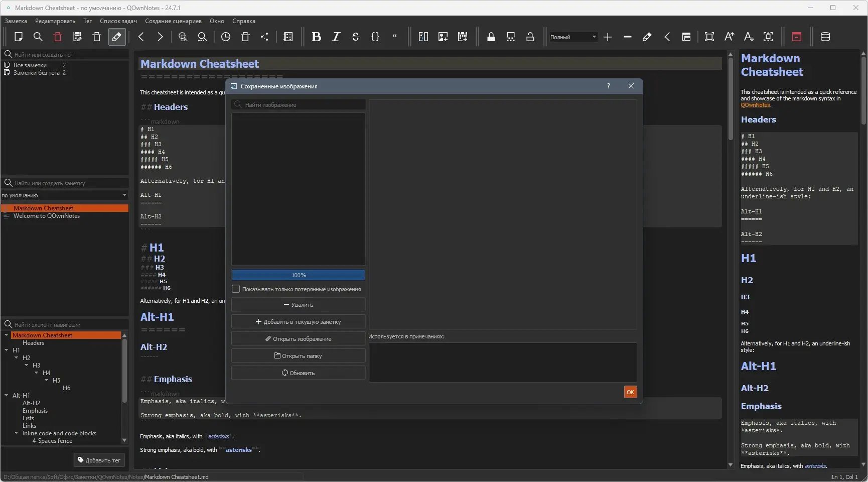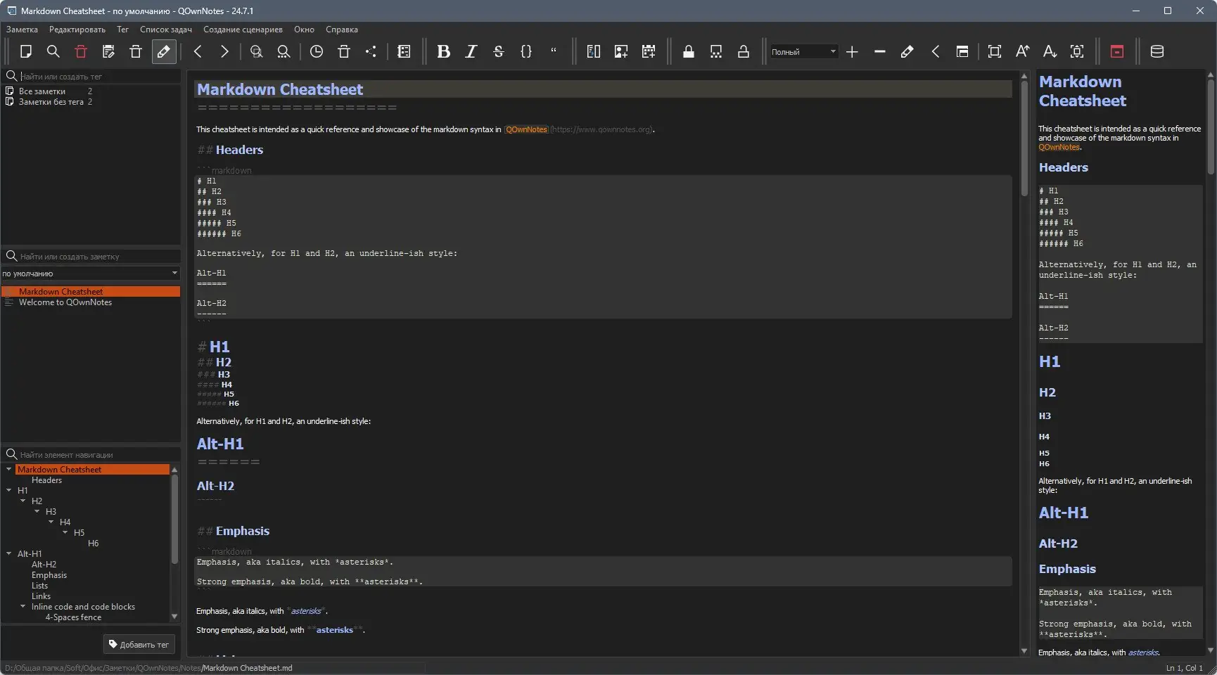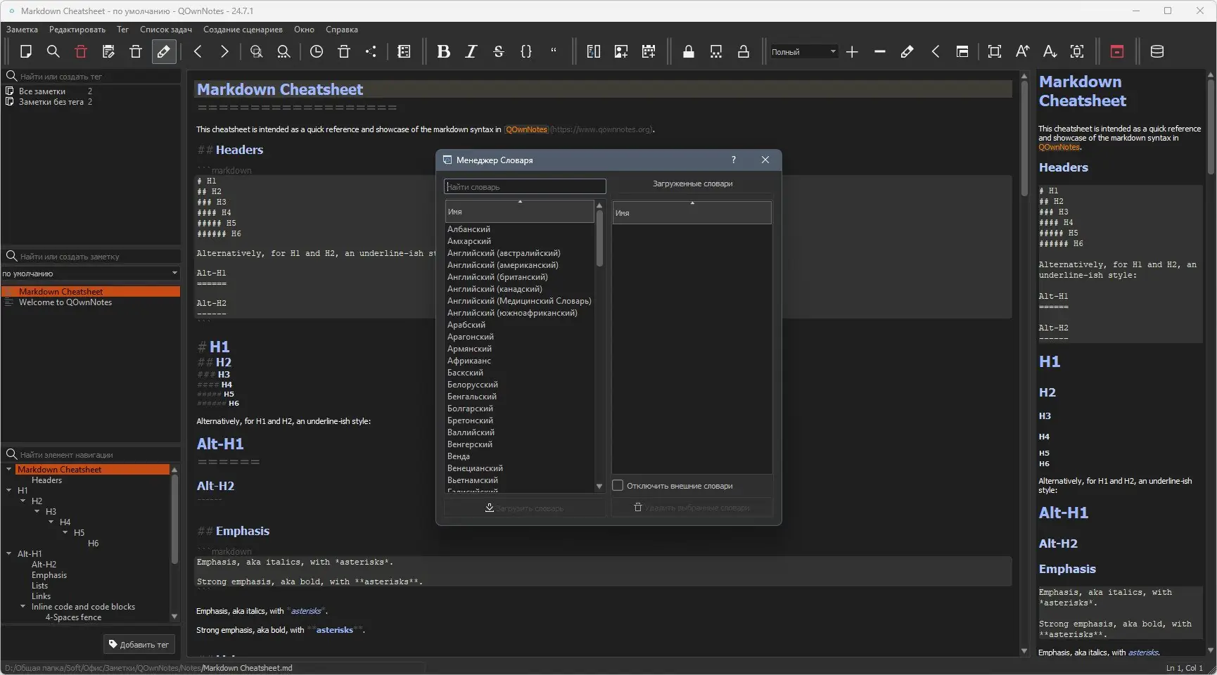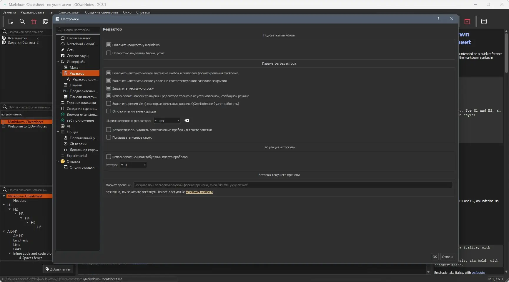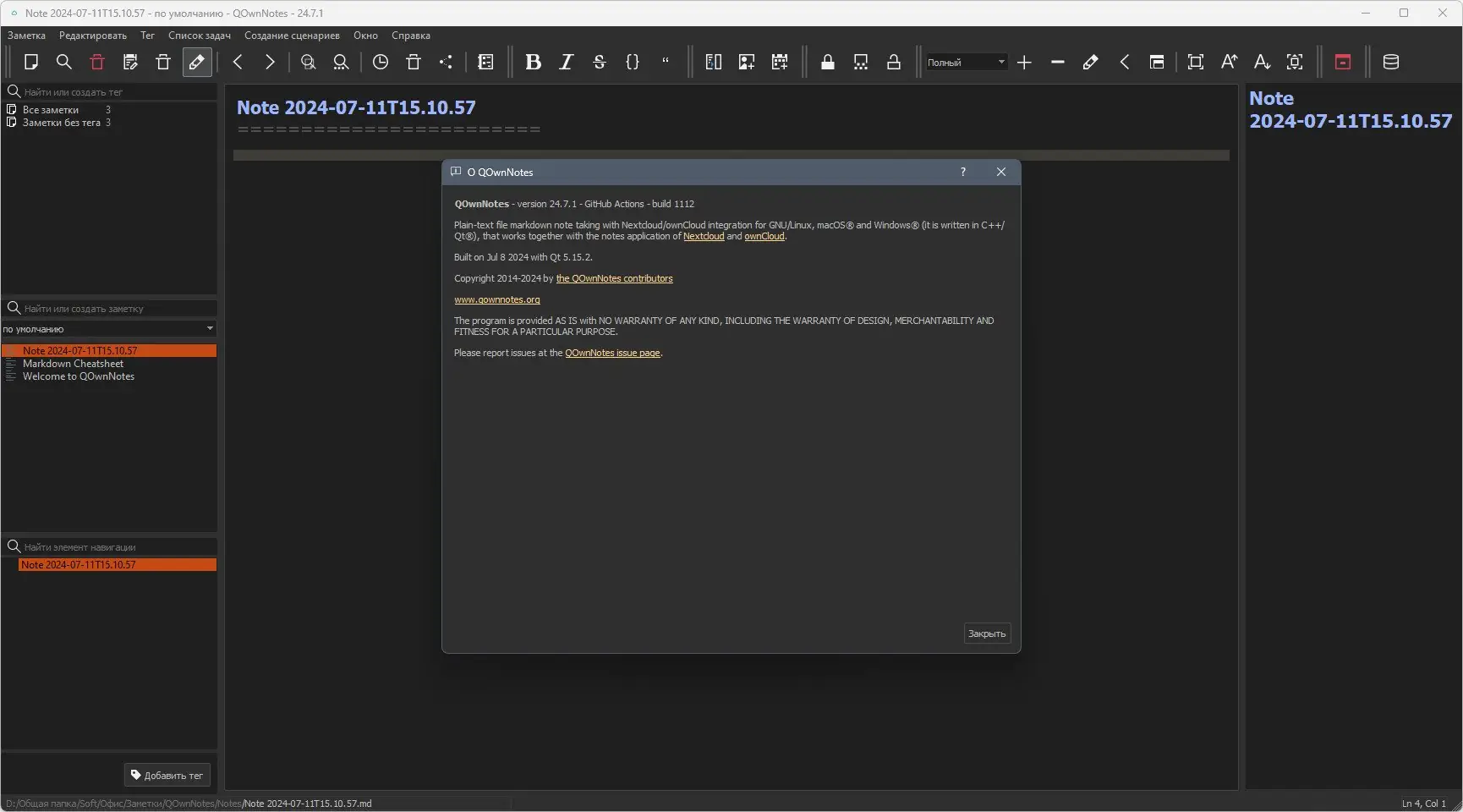 Работа с QOwnNotes