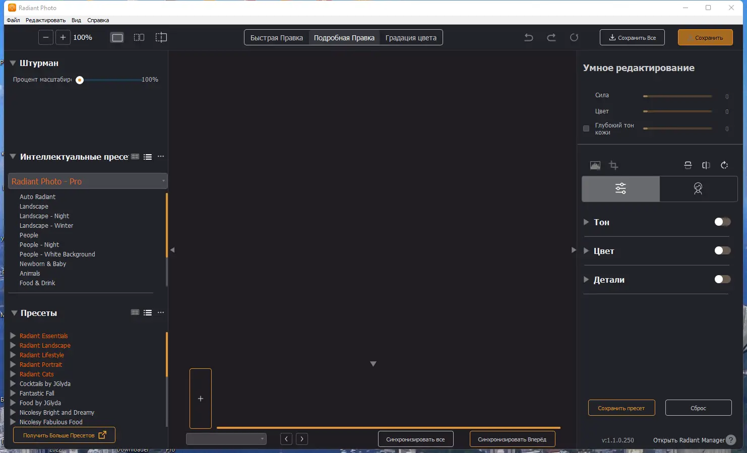 Radiant Photo — это мощный инструмент для редактирования изображений, разработанный для автоматического улучшения фотографий без необходимости ручной настройки сложных параметров. Программа сочетает в себе передовые технологии коррекции цвета, детализации и экспозиции, обеспечивая естественный и профессиональный результат. Идеально подходит как для новичков, так и для опытных фотографов, стремящихся к высокому качеству обработки с минимальными усилиями.