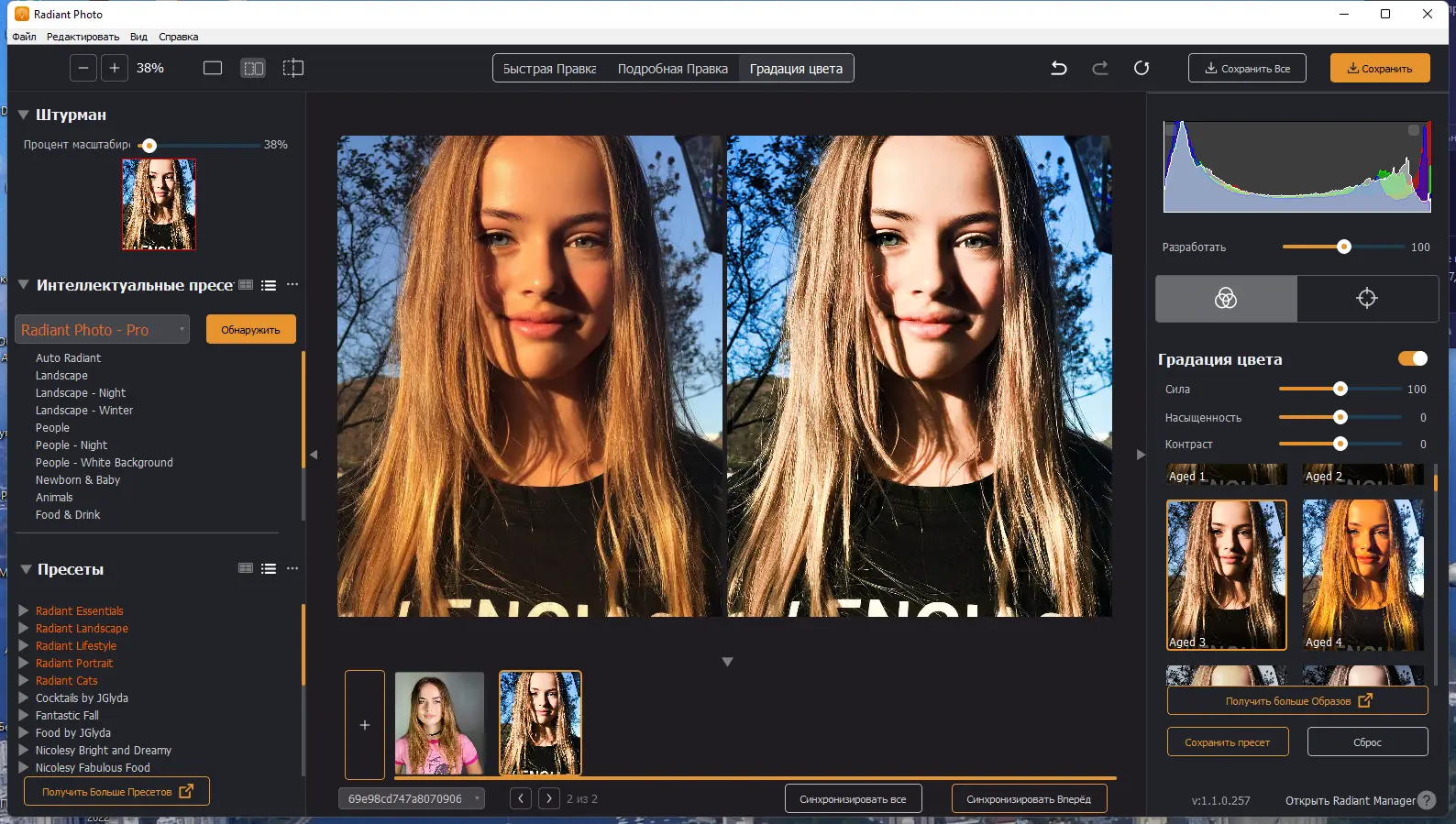 Radiant Photo — это мощный инструмент для обработки изображений, разработанный для автоматического и точного улучшения фотографий. Программа предлагает продвинутые технологии коррекции цвета, экспозиции и детализации, подходящие как для новичков, так и для профессиональных фотографов. Благодаря интуитивному интерфейсу и широкому набору пресетов, редактирование становится быстрым и эффективным.