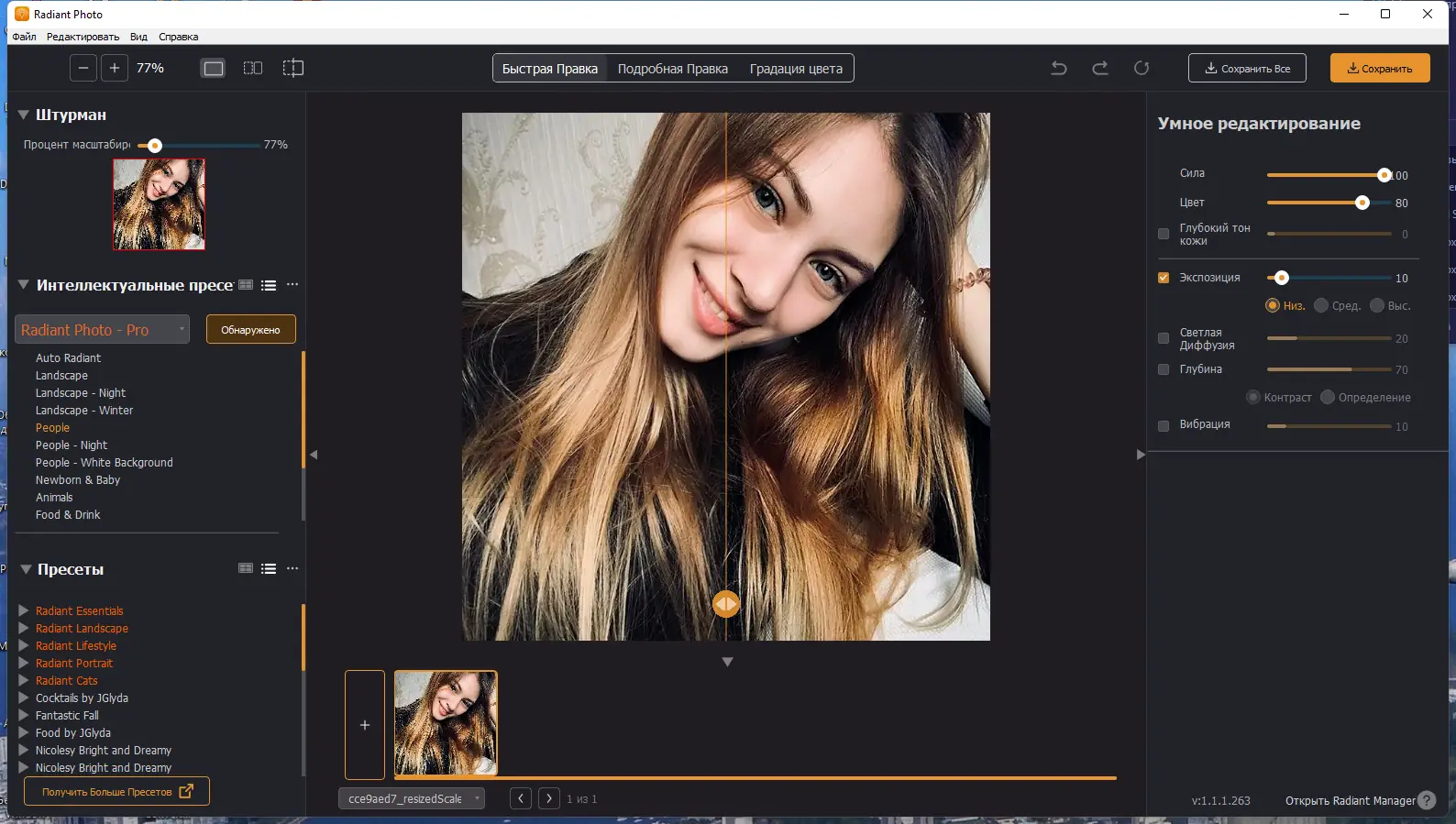 - Гибкая система пресетов и фильтров, позволяющая применять сложные стили за один клик