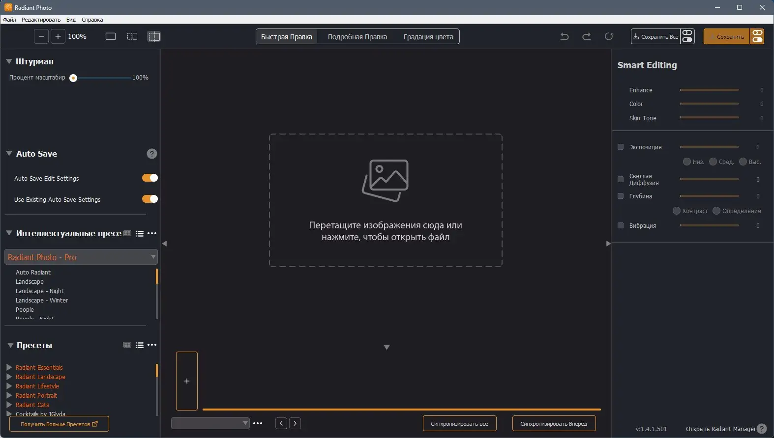 Radiant Photo предлагает комплексное решение для цифровой обработки изображений, объединяя функции цветокоррекции, композиционного редактирования и организации медиатеки. Пользователи могут регулировать экспозицию, баланс белого, насыщенность и контрастность с высокой точностью, используя градиентные маски и локальные корректировки. Интерфейс построен по модульному принципу, что позволяет быстро переключаться между режимами ретуши, развёртки и каталогизации. Поддержка пакетной обработки ускоряет работу с большими массивами снимков, особенно после фотосессий или путешествий.