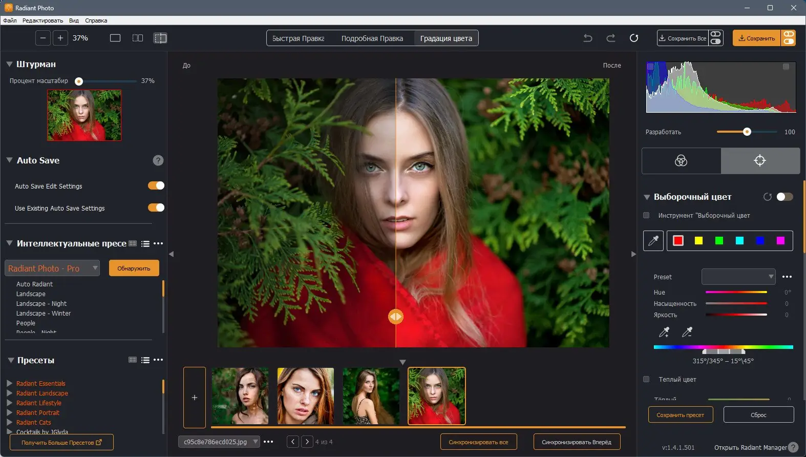 Radiant Photo — это мощный редактор для обработки фотографий, сочетающий профессиональные инструменты коррекции изображений с удобной системой управления коллекциями. Программа подходит как для начинающих пользователей, так и для опытных фотографов, стремящихся улучшить качество своих снимков без необходимости перехода между несколькими приложениями. Она поддерживает широкий спектр форматов, включая RAW, и обеспечивает неразрушающее редактирование, позволяя в любой момент вернуться к исходному состоянию файла.