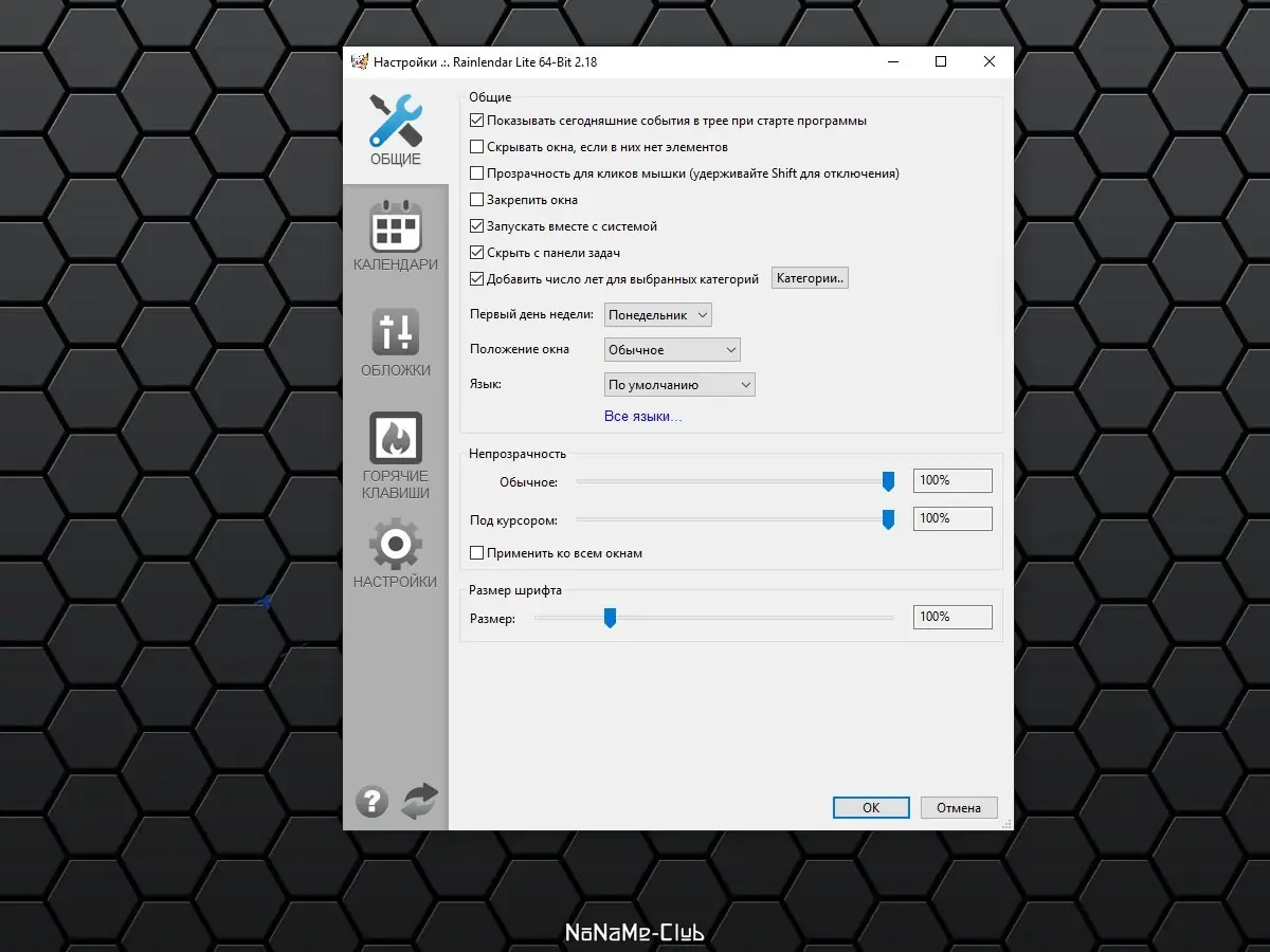 Rainlendar — это компактный и функциональный календарь для рабочего стола, сочетающий в себе удобство планирования задач и гибкую настройку внешнего вида. Программа поддерживает смену скинов, настройку прозрачности, работу с горячими клавишами и установку дополнительных модулей. Интерфейс доступен на множестве языков, включая русский, который можно подключить через встроенное меню настроек. Синхронизация с Google Calendar не предусмотрена.