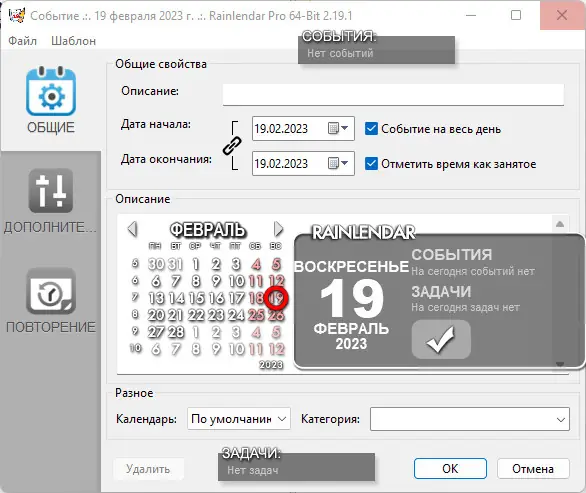 Rainlendar — это компактный и функциональный календарь для рабочего стола, который отображает события и задачи без перегрузки интерфейса. Программа поддерживает синхронизацию, настройку внешнего вида и работу с планированием в режиме реального времени. Она совместима с различными операционными системами и предлагает пользователям гибкие инструменты для организации повседневных дел.