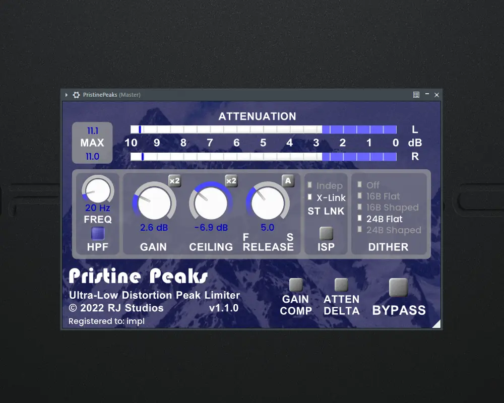 Лимитер Pristine Peaks от Raising Jake Studios — это высокоточный инструмент для контроля пиковых уровней сигнала с минимальными искажениями, подходящий как для микширования, так и для финального мастеринга. Программа обеспечивает прозрачную обработку звука даже при сильном подавлении пиков, сохраняя естественную динамику и детализацию аудиосигнала.