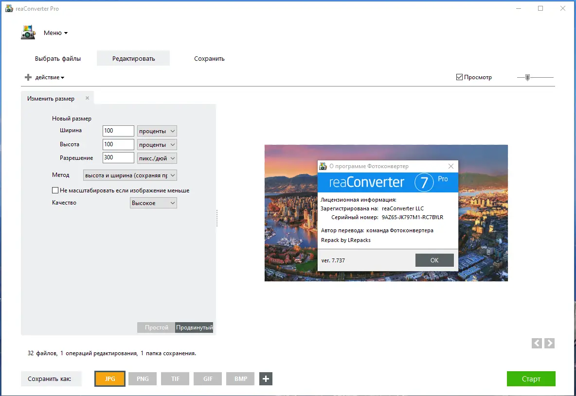 reaConverter обеспечивает эффективную работу с графическими файлами за счёт поддержки множества форматов и возможностей пакетной обработки. Пользователь может одновременно конвертировать сотни изображений, изменяя их размер, качество, цветовую модель и другие параметры. Программа поддерживает как стандартные форматы, такие как JPEG, PNG и BMP, так и специализированные, включая TIFF, PSD, RAW и PDF. Это делает её незаменимой при подготовке изображений для публикации, архивирования или передачи в другие системы. Функция предварительного просмотра позволяет сразу оценить результат изменений, что исключает необходимость повторной обработки.