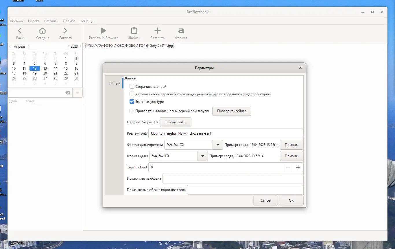 RedNotebook представляет собой удобное приложение для ведения цифрового дневника, ориентированное на пользователей, ценящих простоту и функциональность. Программа не требует сложной настройки и сразу готова к использованию после запуска. Написанная на языке Python, она использует графическую оболочку GTK+, что обеспечивает совместимость с разными операционными системами, особенно в среде Gnome. Каждая запись сохраняется локально, что гарантирует приватность и безопасность данных. Программа поддерживает форматирование текста, вставку изображений и гиперссылок, что расширяет возможности оформления заметок.
