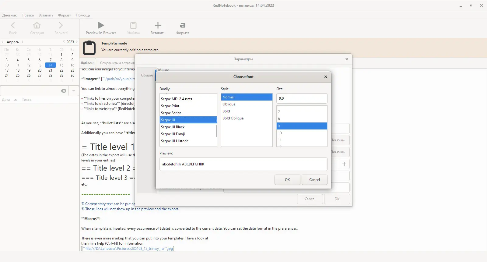 Работа с RedNotebook