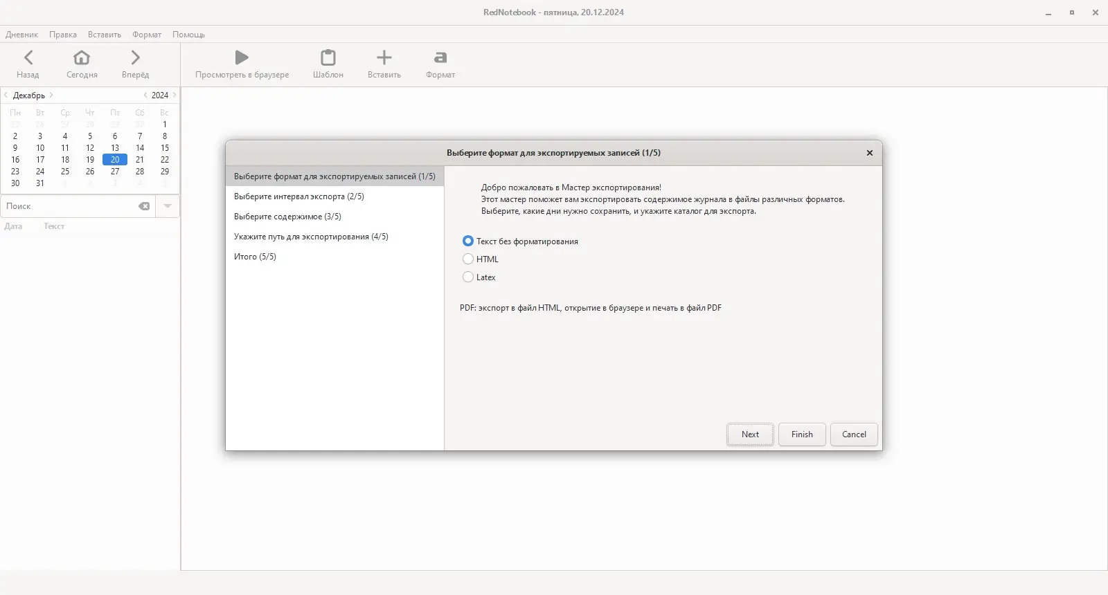 RedNotebook сочетает минимализм дизайна с практичностью функций, что делает его идеальным решением для повседневного ведения записей.