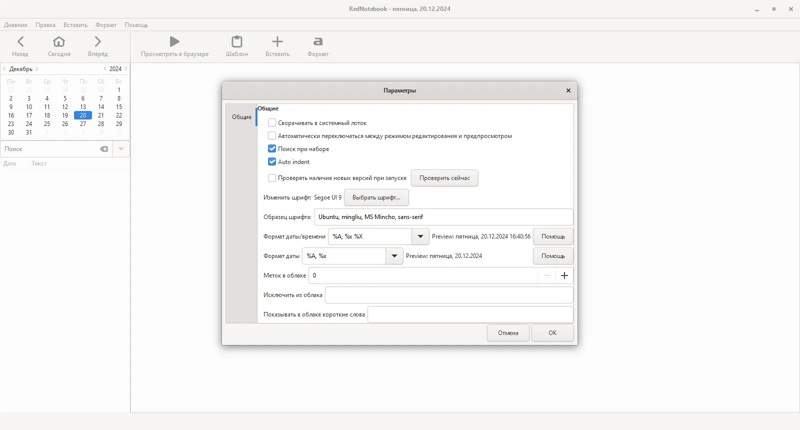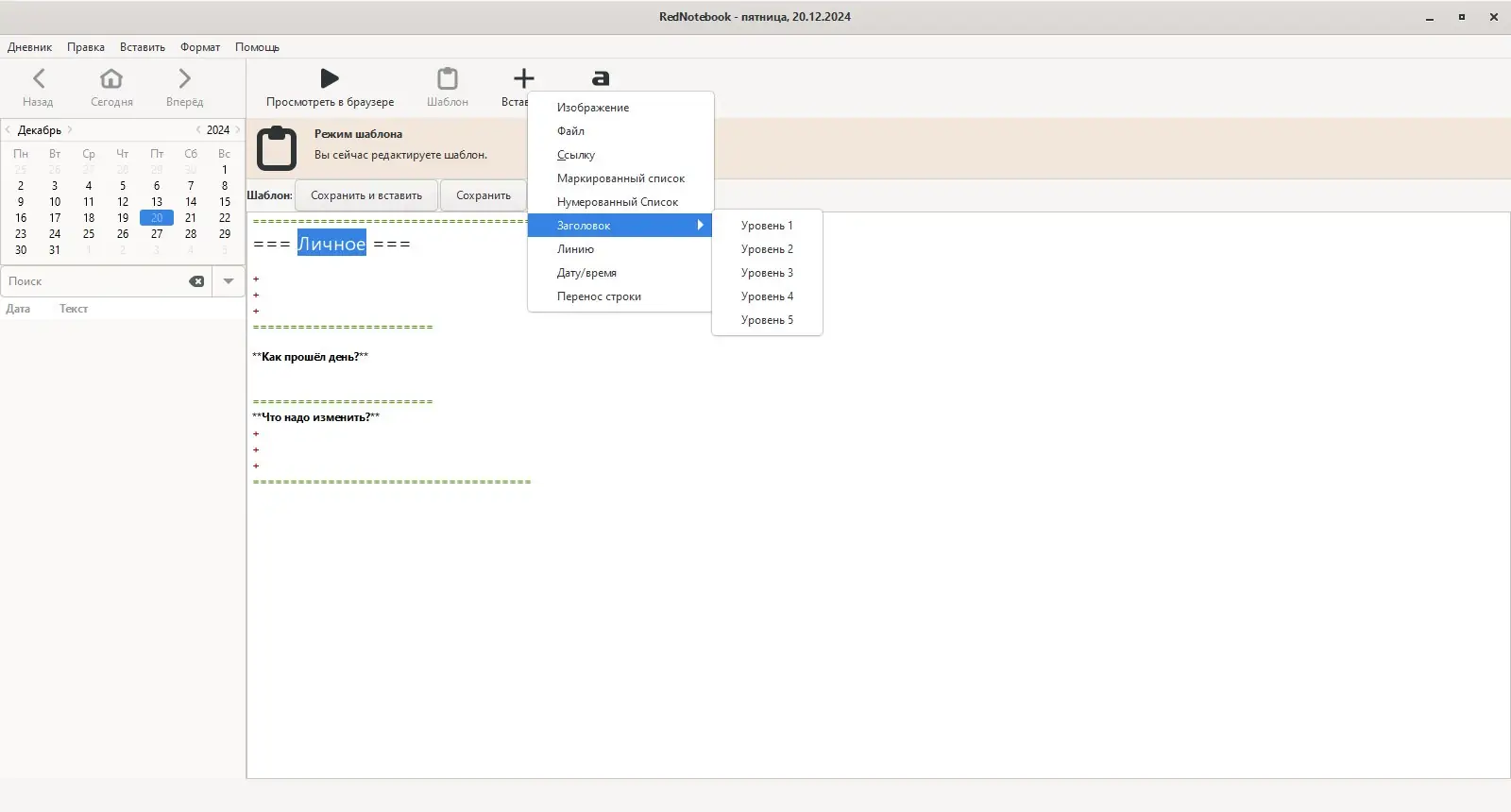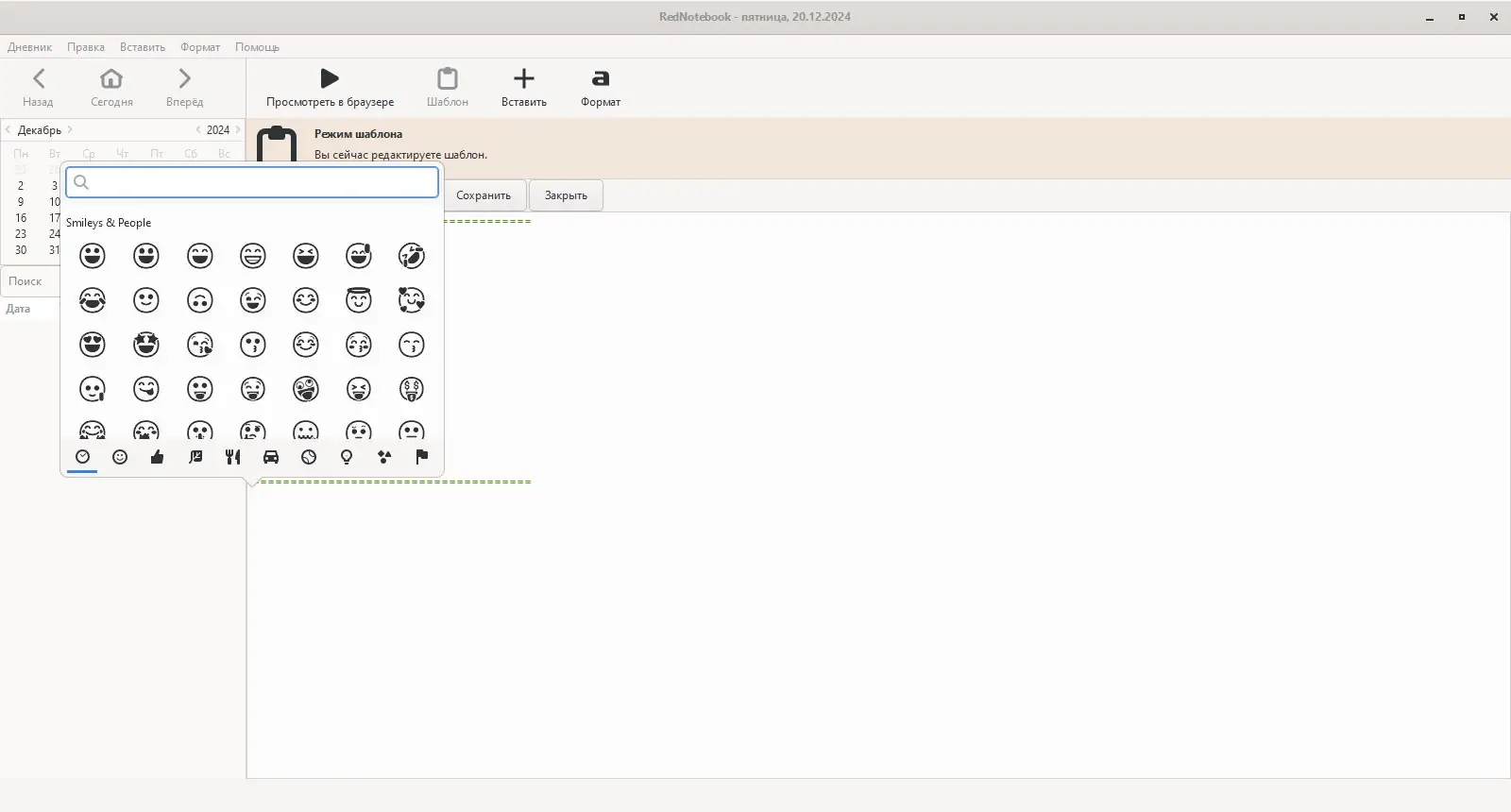 Работа с RedNotebook