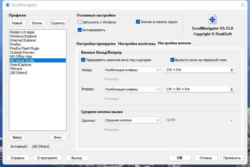 - Возможность временного отключения функций через клавишу Ctrl