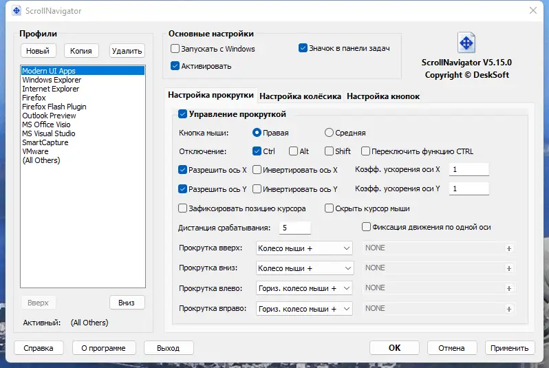 Программа работает на уровне системы, обеспечивая стабильную прокрутку даже в устаревших приложениях