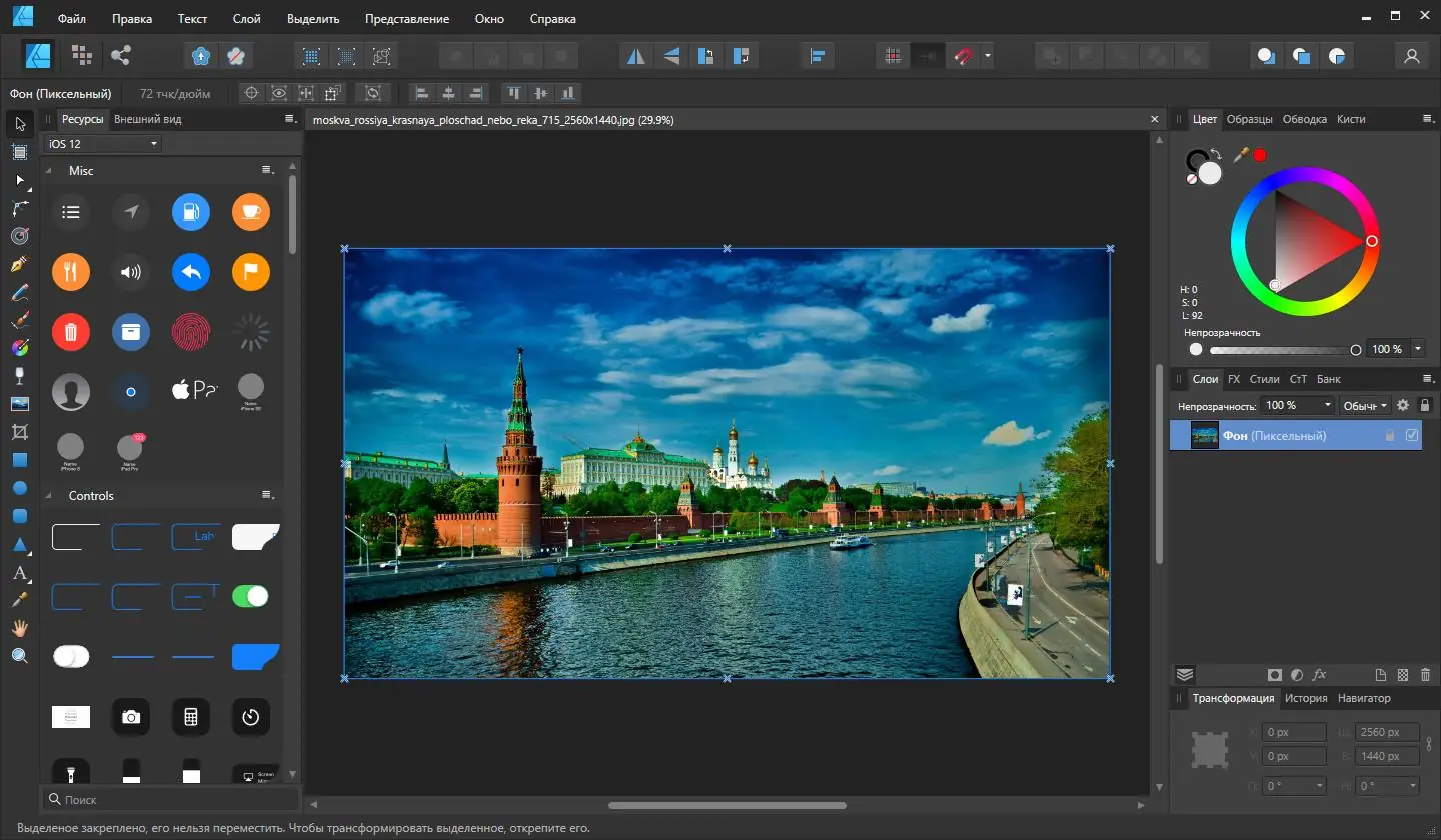 Работа в программе начинается с выбора рабочего пространства — векторного, пиксельного или комбинированного. Инструмент «Перо» позволяет создавать сложные контуры с высокой точностью, а динамические фигуры автоматически привязываются к сетке и направляющим. Режим стабилизации кисти помогает рисовать плавные линии, а символы ускоряют создание повторяющихся элементов интерфейсов. Текст можно размещать по контуру, применять к нему сложные стили и преобразовывать в кривые для детальной настройки. Пиксельный просмотр обеспечивает точное отображение графики на экранах Retina и других высокоплотных дисплеях. Все операции выполняются без потери качества, а система неразрушающих редактирований позволяет вносить изменения на любом этапе.