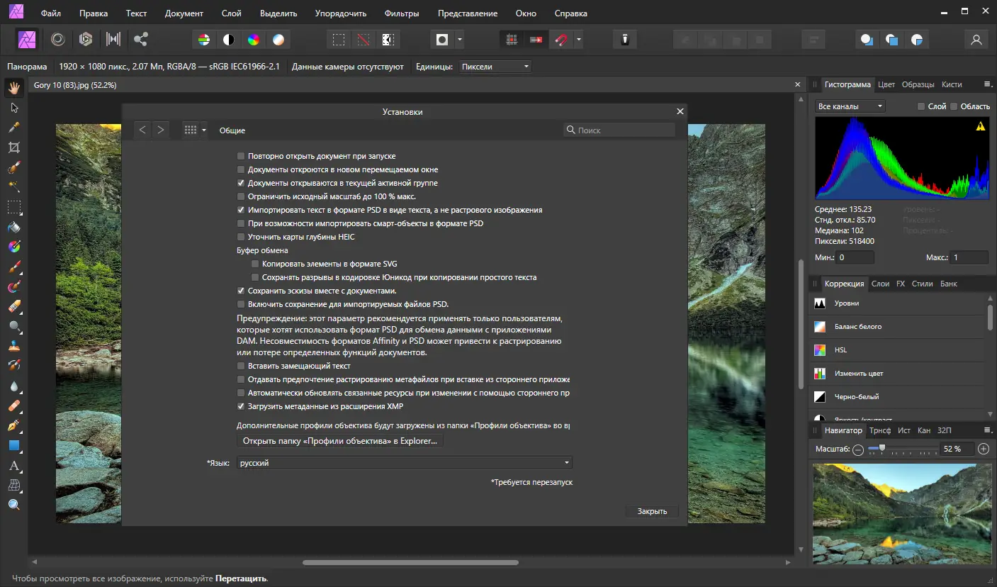 Serif Affinity Photo — это современный графический редактор, разработанный для художников, фотографов и дизайнеров, которым нужен полный контроль над изображением. Программа работает с высоким быстродействием, обеспечивая плавное масштабирование и панорамирование даже при работе с гигантскими файлами. В ней реализованы все ключевые функции, необходимые для профессиональной обработки фото, включая поддержку RAW, 16-битные фильтры и точную цветокоррекцию.