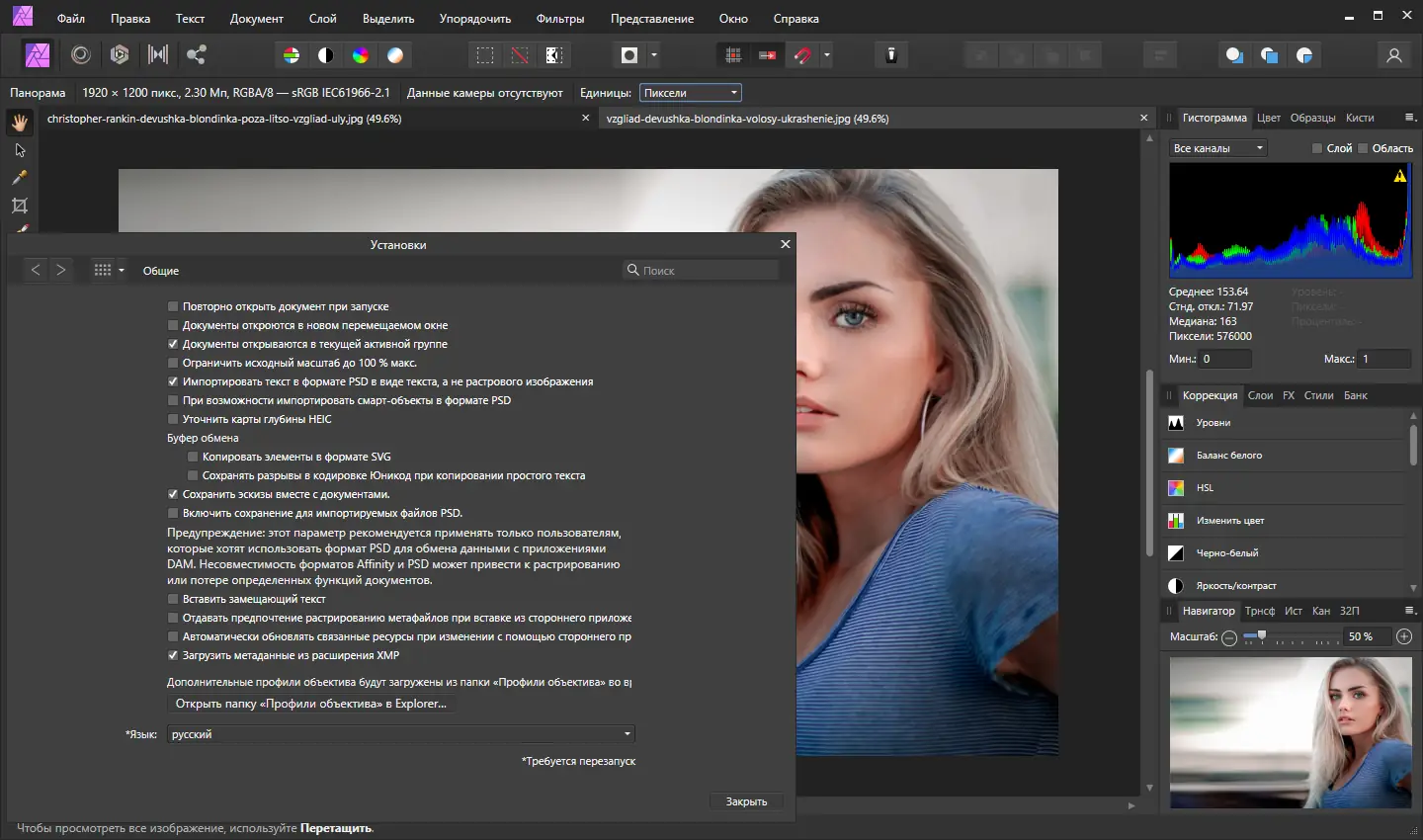 Работа с Serif Affinity Photo