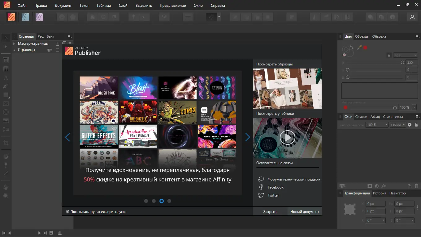 Работа с Serif Affinity Publisher