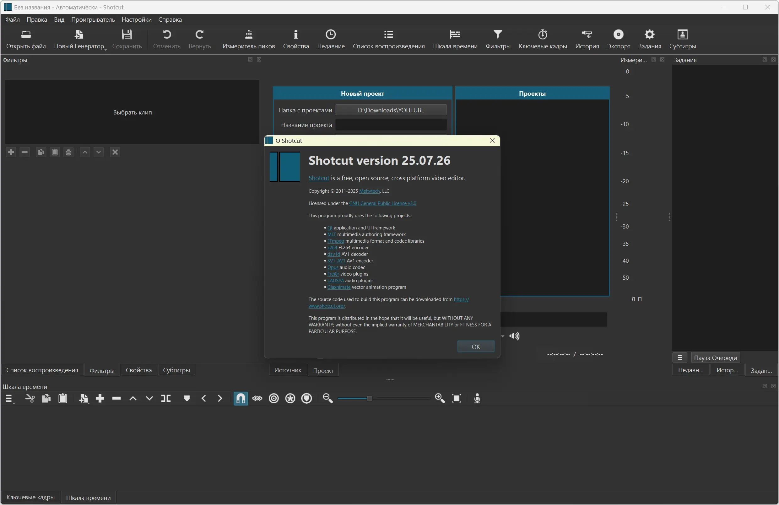 Shotcut сочетает в себе функциональность профессионального редактора и доступность для начинающих пользователей.