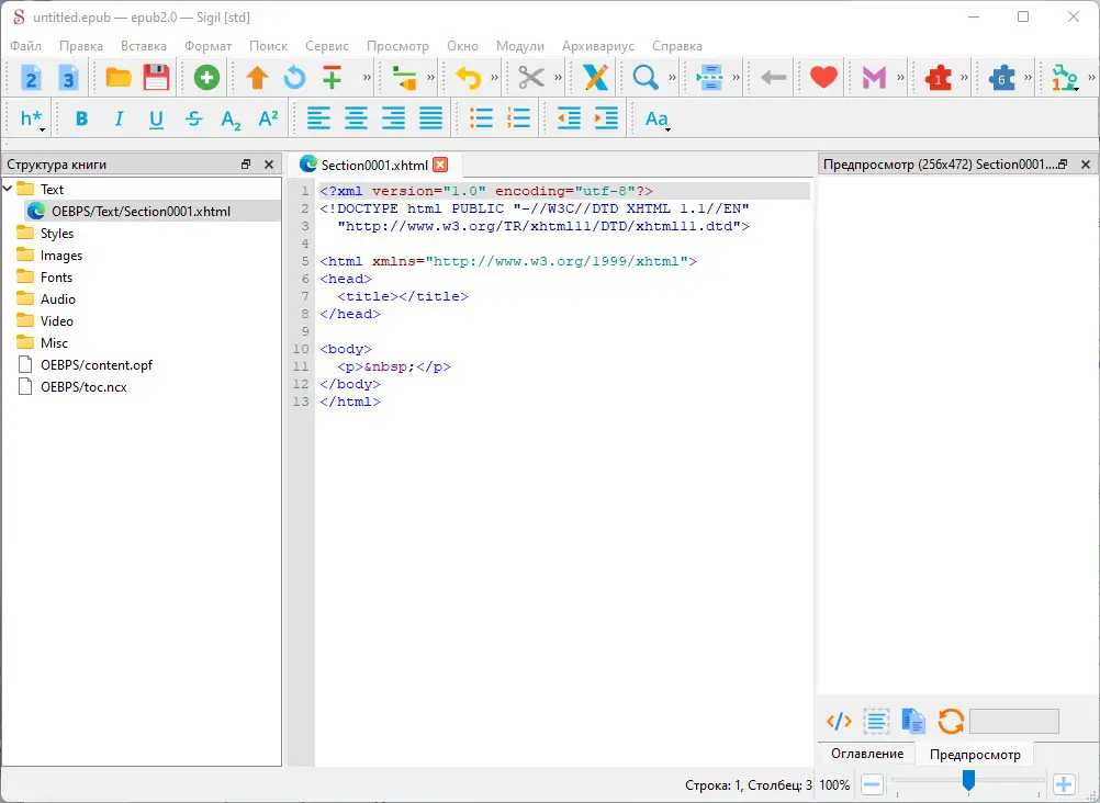 Sigil позволяет работать с электронными книгами на глубоком уровне, обеспечивая полный контроль над содержанием и оформлением. Пользователь может создавать документы с нуля или редактировать существующие EPUB-файлы, изменяя как текст, так и структуру. Поддержка HTML и XHTML даёт возможность точной настройки разметки, а встроенные инструменты помогают управлять таблицами стилей, изображениями и метаданными. Программа также поддерживает вставку видео и графики, что расширяет возможности при создании интерактивных изданий. С её помощью легко формируется оглавление, добавляются фрагменты и управляется древовидная структура документа.