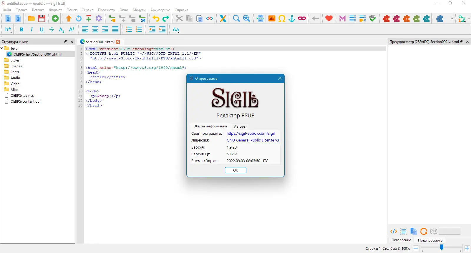 Sigil — это универсальный редактор электронных книг в формате EPUB, ориентированный на создание и детальное редактирование цифровых изданий. Программа поддерживает работу с HTML, XHTML и TXT, обеспечивая высокий уровень контроля над структурой и оформлением документа. Пользователи могут добавлять медиафайлы, настраивать стили, формировать оглавление и управлять метаданными, что делает процесс работы с книгами максимально гибким и интуитивным.