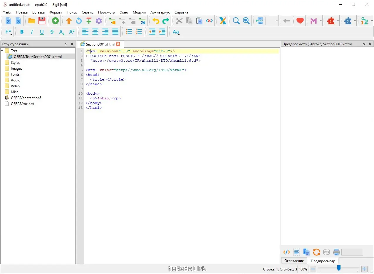 Работа с Sigil