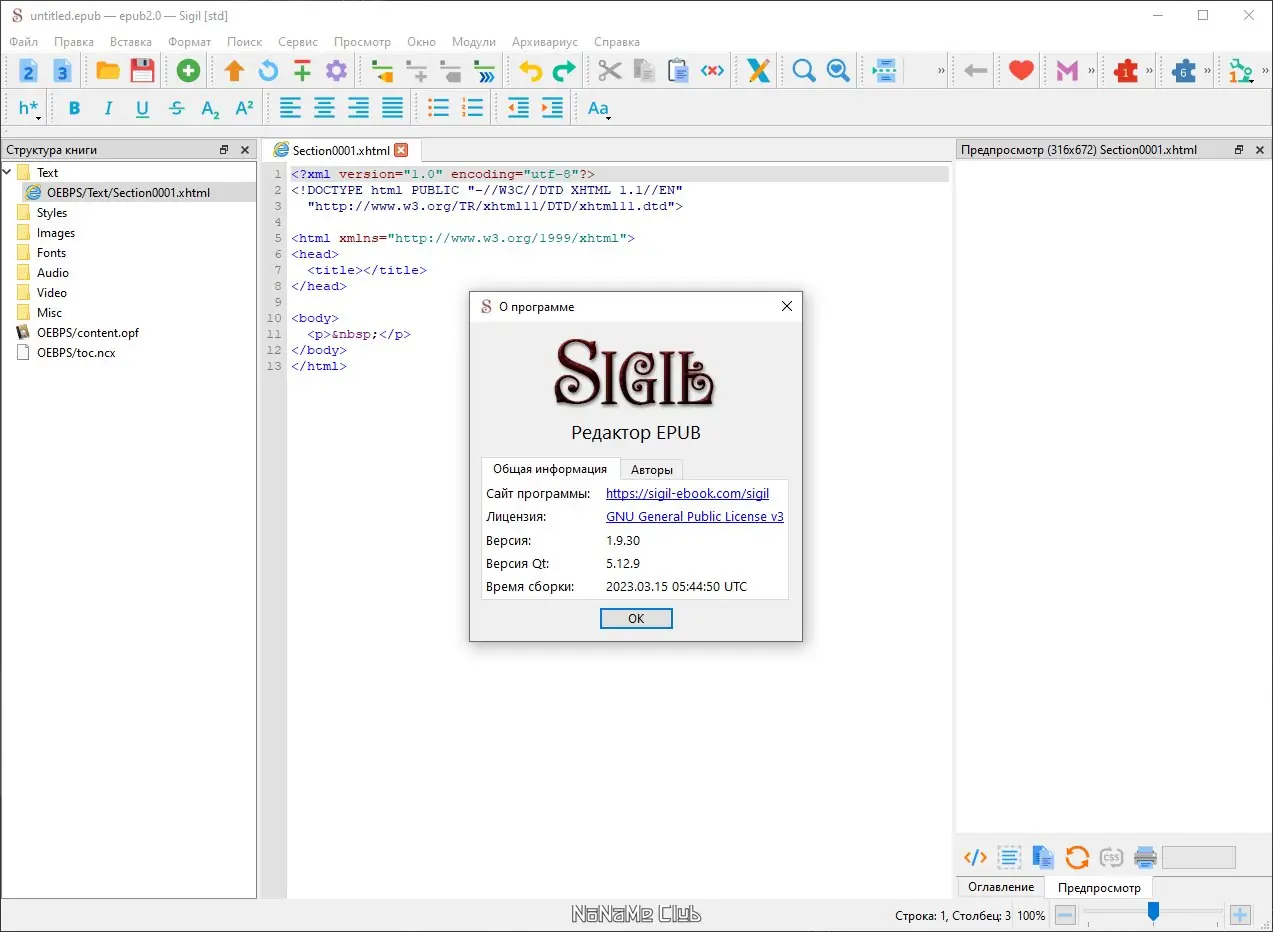 Sigil — это универсальный редактор электронных книг в формате EPUB, предназначенный для создания и редактирования цифровых изданий с широкими возможностями настройки контента и внешнего вида. Программа поддерживает работу с текстом, изображениями, видео и стилевыми таблицами, обеспечивая высокий уровень контроля над структурой документа.