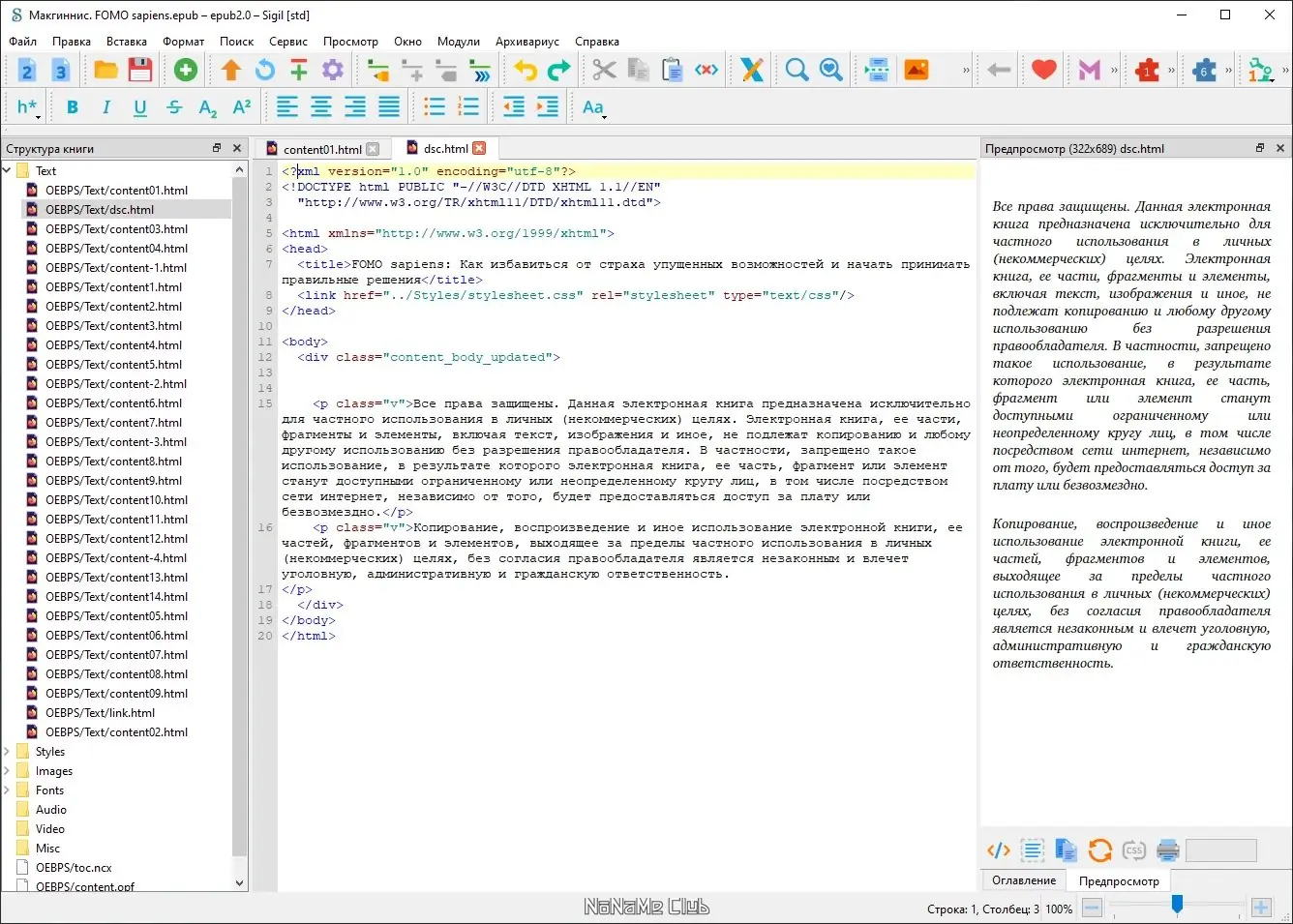 - Полноценная поддержка EPUB 3 с возможностью ручного редактирования кода.