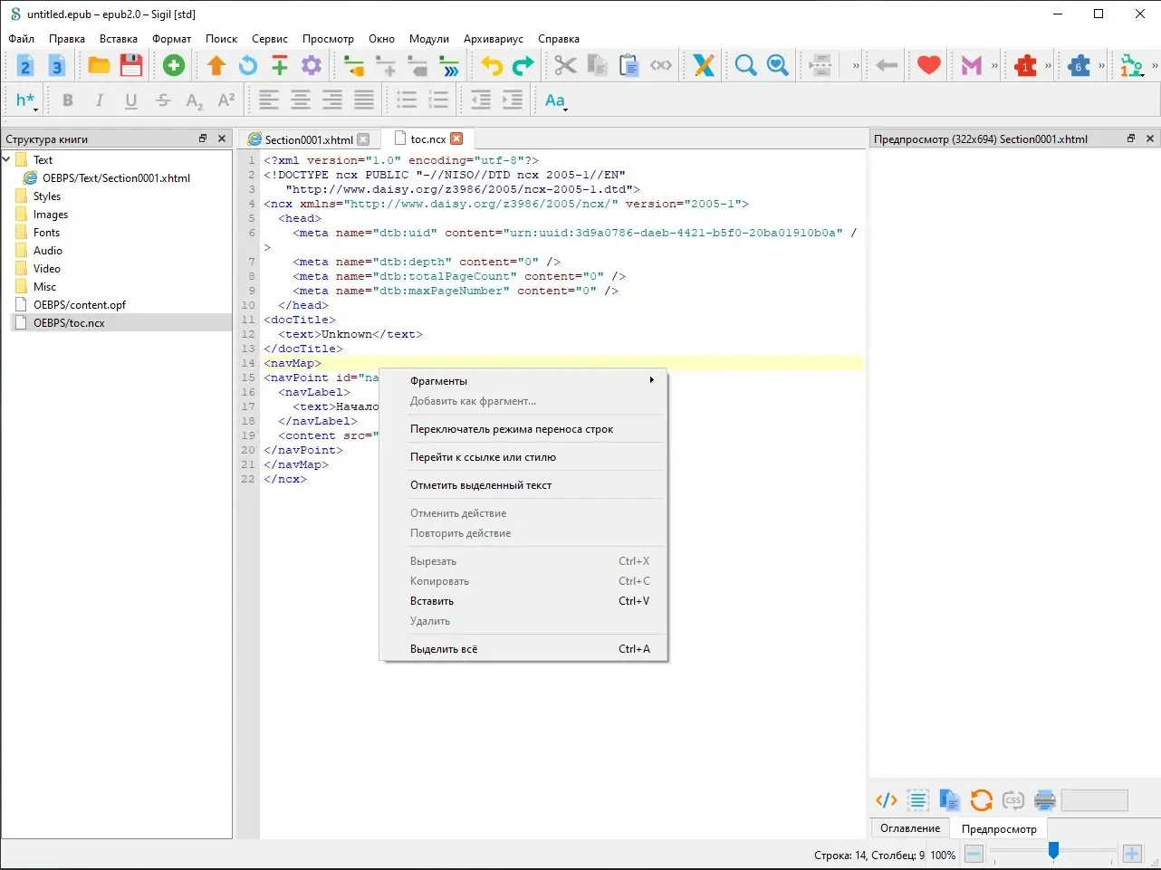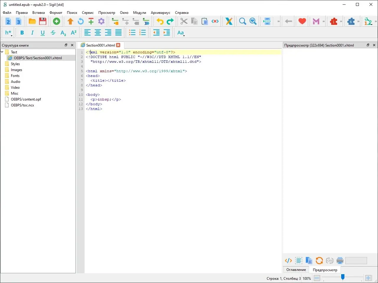 Sigil предоставляет широкие возможности для работы с электронными книгами, позволяя создавать документы в стандарте EPUB с нуля или редактировать уже существующие. Поддержка HTML и XHTML делает возможным точное форматирование контента, включая стили CSS, что особенно важно для корректного отображения текста на разных устройствах. Пользователи могут добавлять изображения, видео, гиперссылки, а также управлять структурой книги через оглавление и древовидную навигацию.