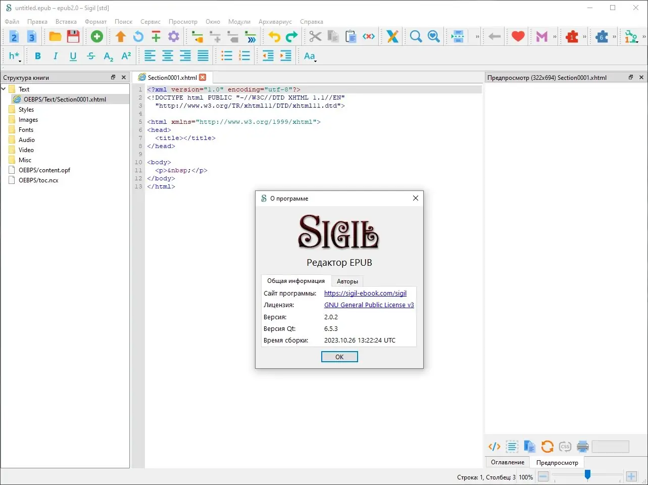 Sigil — это универсальный редактор электронных книг в формате EPUB, предназначенный для создания, редактирования и настройки цифровых изданий с поддержкой множества форматов и инструментов верстки. Программа ориентирована на пользователей, которым требуется полный контроль над структурой и оформлением книги, включая метаданные, дизайн обложки, разметку текста и вставку медиаэлементов. Интерфейс сочетает простоту для новичков и расширенные возможности для профессионалов.