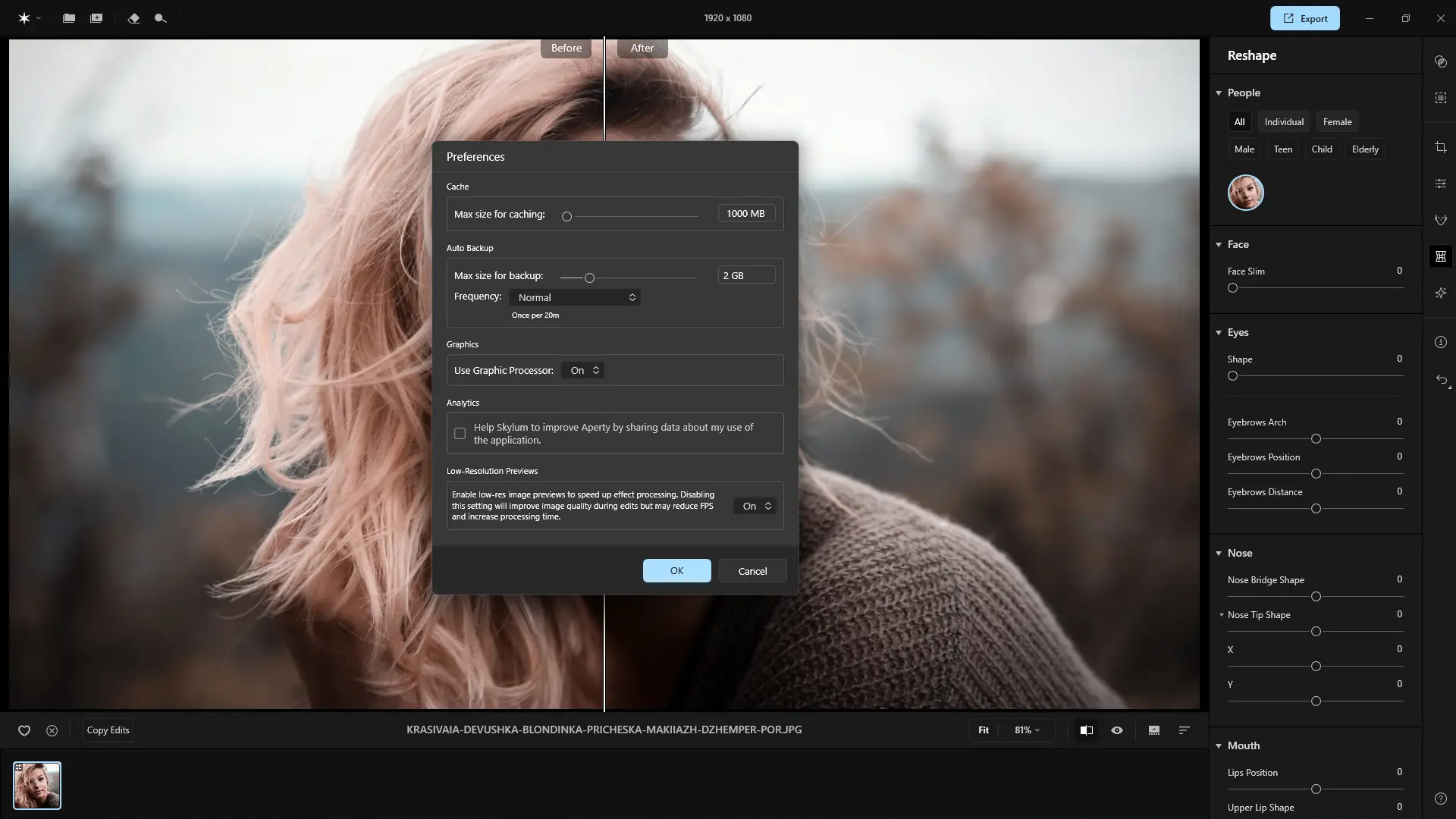 После установки программы, пользователь может загрузить одно или несколько изображений для обработки. Интерфейс интуитивно понятен: основные инструменты сгруппированы по категориям — от коррекции кожи до изменения формы лица и моделирования тела. Достаточно выбрать нужный эффект, например, отбеливание зубов или разглаживание морщин, и программа автоматически применит изменения с учётом контекста. Для групповой обработки используется функция пакетного редактирования, позволяющая применить одинаковые настройки ко всем выбранным снимкам, что особенно удобно при работе с сериями портретов. Поддержка плагинов позволяет использовать Aperty в связке с другими графическими редакторами, не прерывая привычный рабочий процесс.