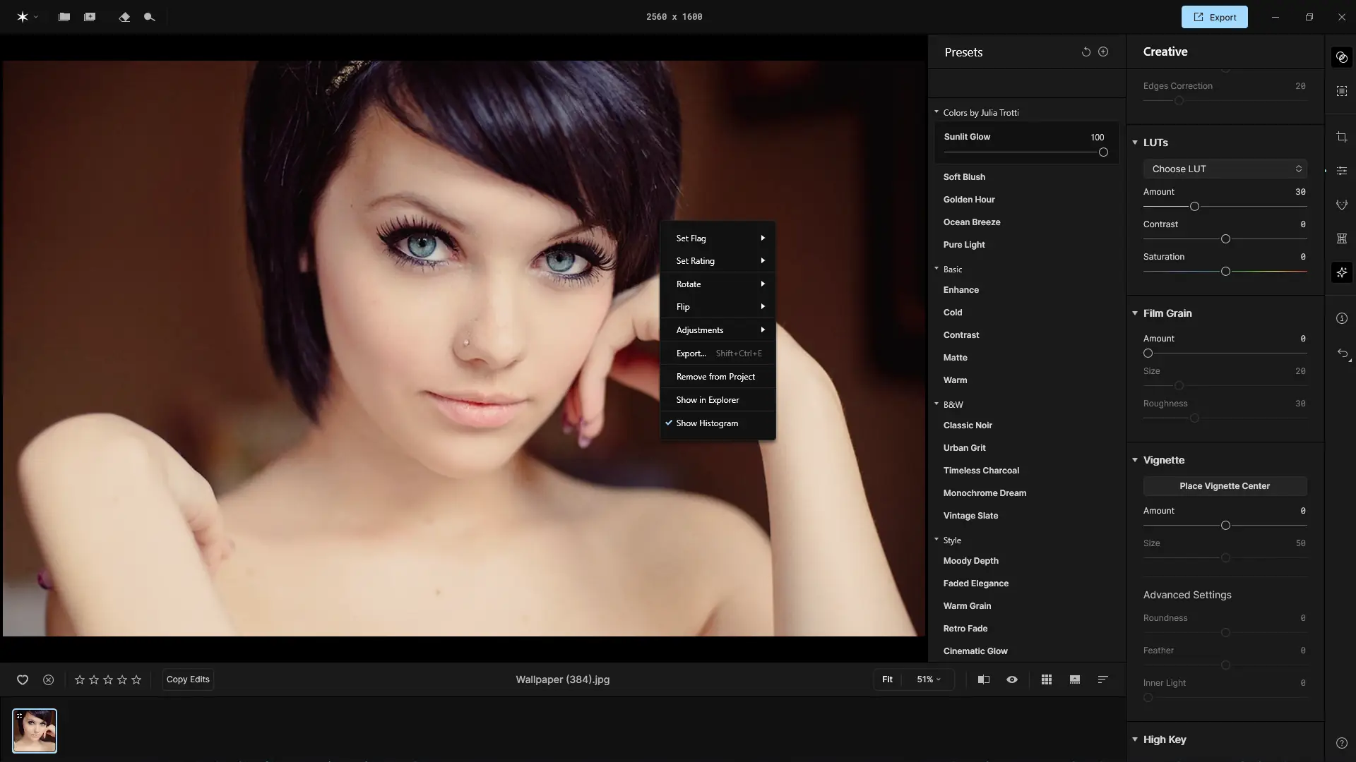 Skylum Aperty представляет собой специализированный редактор изображений, разработанный для ускорения ретуши портретной фотографии. Основная цель приложения — минимизировать рутинные действия, связанные с ручной коррекцией кожи, зубов, волос и макияжа. Благодаря встроенному искусственному интеллекту, программа распознаёт анатомические особенности лица и применяет изменения с высокой точностью, сохраняя естественность внешнего вида модели. Это делает её незаменимым инструментом для студийных фотографов и фрилансеров, работающих с большим объёмом снимков.