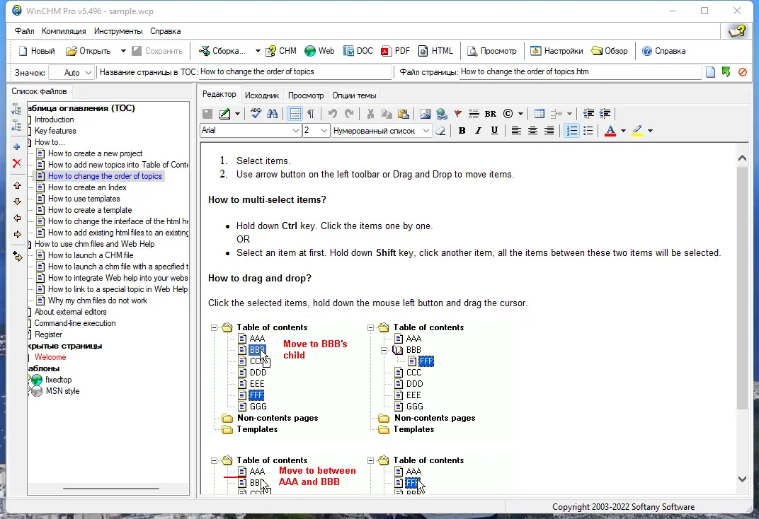 Softany WinCHM — это удобный инструмент для создания и редактирования файлов справочной документации в форматах CHM, HTML, PDF и Word. Программа подходит как для новичков, так и для профессионалов, позволяя обходиться без глубоких знаний языка разметки. Интерфейс напоминает текстовые редакторы, что упрощает процесс создания сложных структур документов.