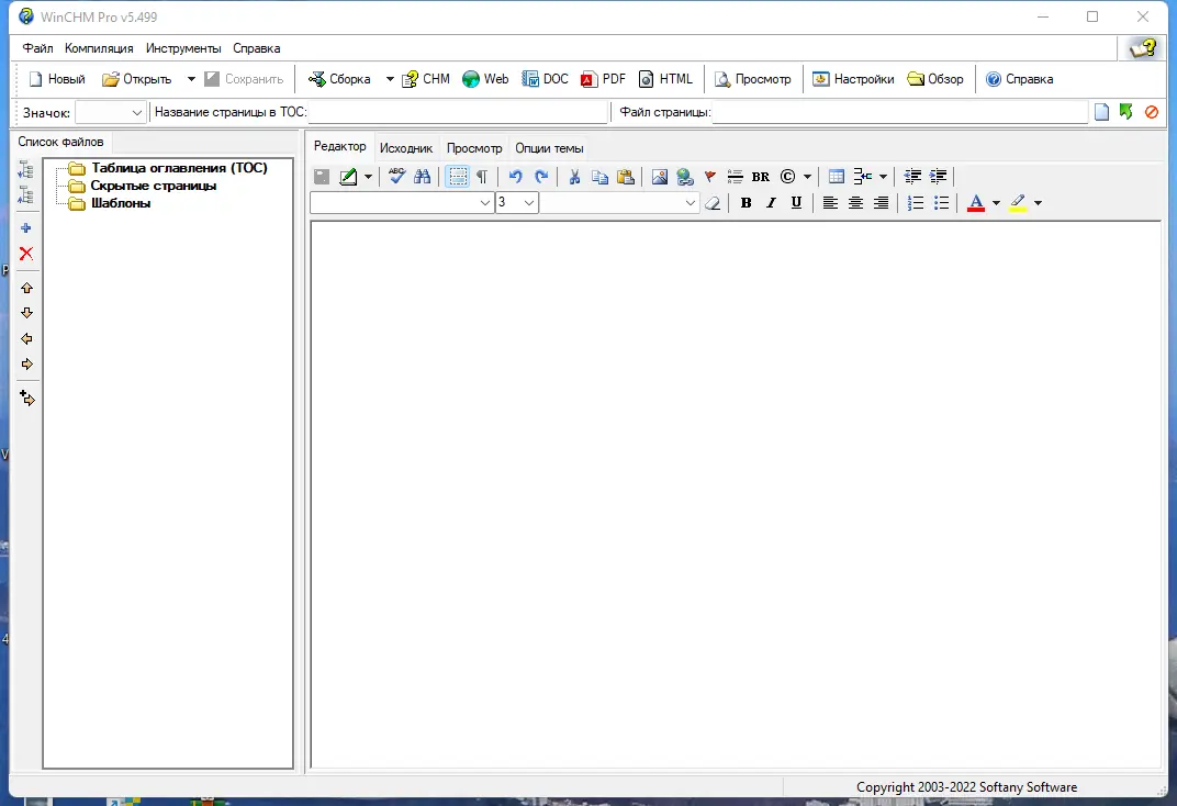 Softany WinCHM — это инструмент для создания документации в популярных форматах, включая CHM, HTML, PDF и Word. Программа подходит как для технических специалистов, так и для пользователей без навыков программирования, обеспечивая простой и визуальный подход к редактированию и компиляции справочных материалов. Интерфейс напоминает текстовые редакторы, что делает процесс интуитивно понятным и быстрым.