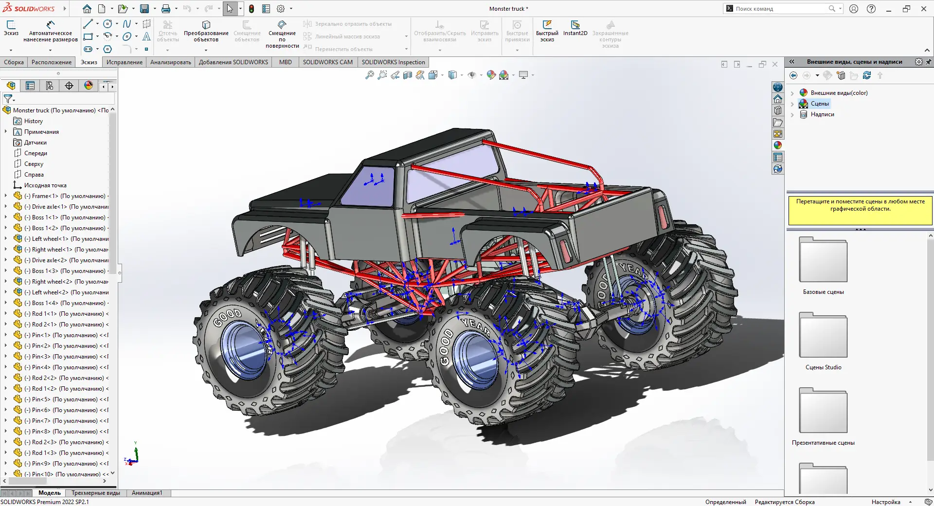 - Возможность работать с большими сборками и сложными моделями без значительного падения производительности.