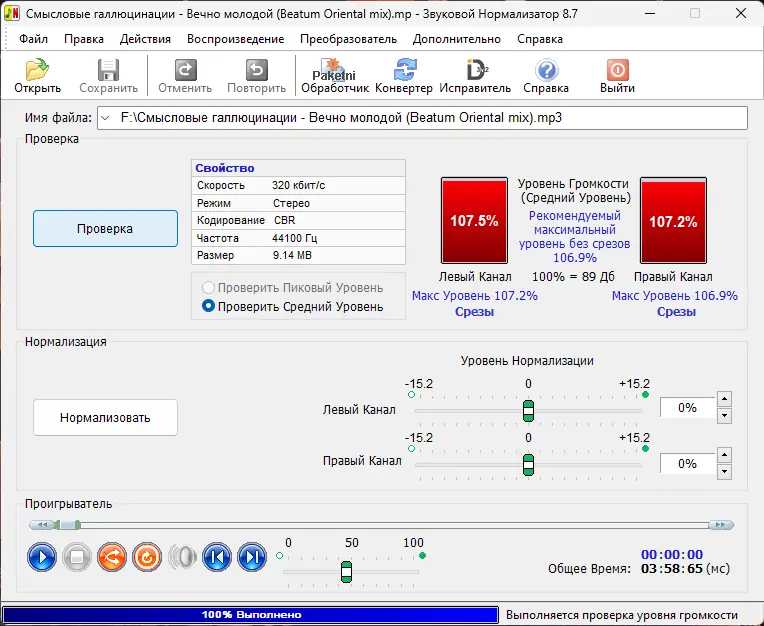- Точная нормализация с использованием RMS и пиковых алгоритмов