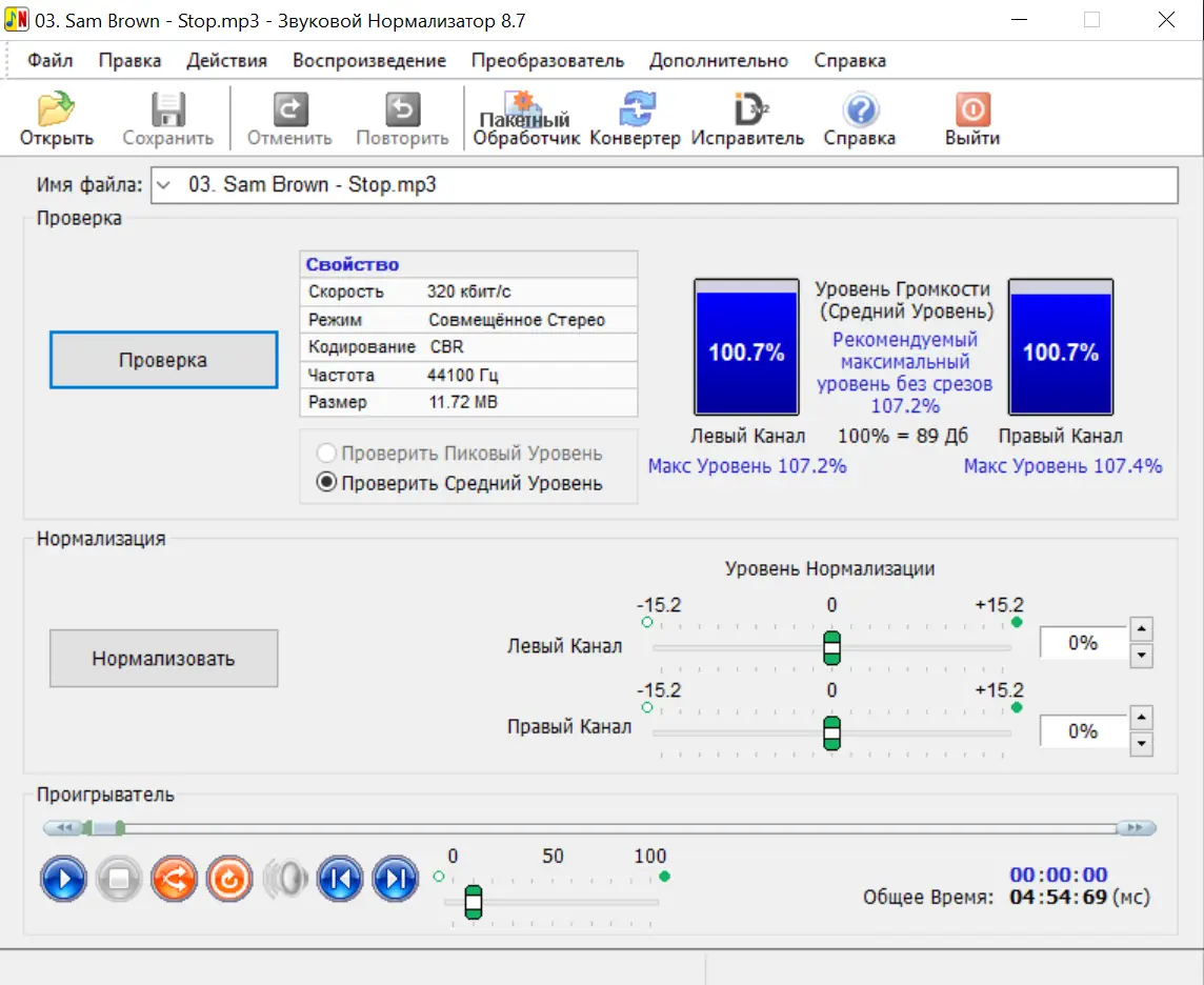 - Реализация пиковой нормализации для WAV и RMS-нормализации по стандарту Replay Gain для MP3.