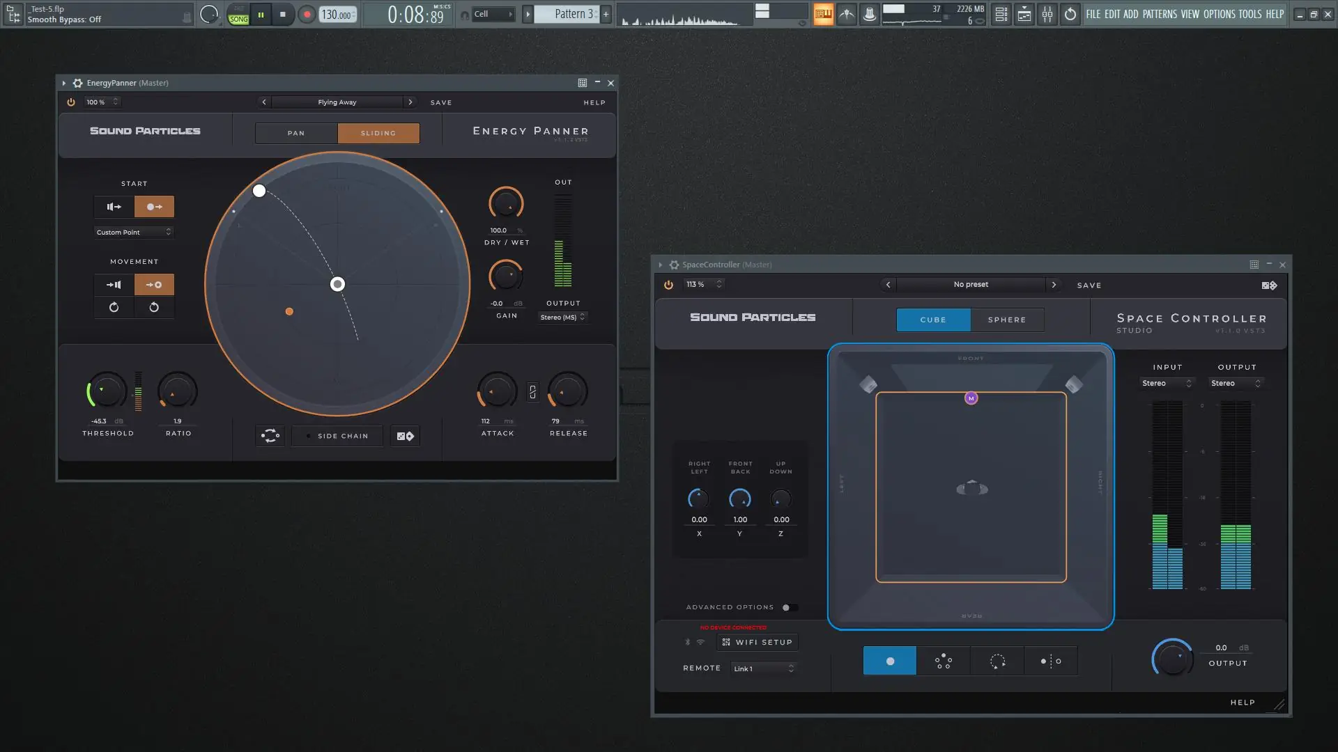 Работа с программой начинается с создания виртуального пространства, в котором размещаются звуковые частицы. Каждая частица может быть связана с аудиофайлом или генератором сигнала. Пользователь задаёт параметры движения, громкости, тембра и пространственного положения. Плагины из 6FX Bundle подключаются к дорожкам в DAW и работают в реальном времени. Например, Air позволяет имитировать затухание высоких частот при удалении источника, а Doppler — точное изменение высоты тона при движении объекта. Energy panner использует динамическую интенсивность сигнала для автоматического панорамирования, что особенно полезно при создании живых, дышащих композиций. Плагин Space Controller позволяет использовать смартфон как контроллер движения, физически указывая, куда должен перемещаться звук в пространстве. Density, в свою очередь, создаёт хоровые или ансамблевые эффекты из одного источника, добавляя глубину и насыщенность.