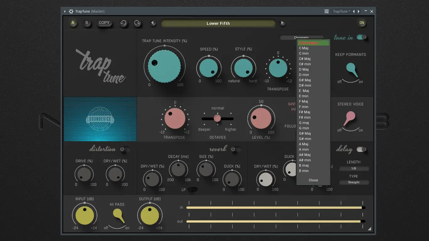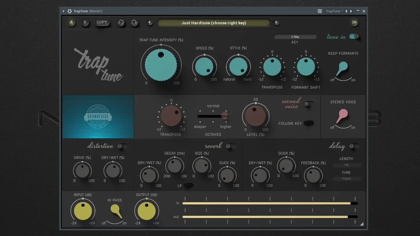 Soundevice Digital TrapTune — это мощный вокальный плагин, предназначенный для точной коррекции высоты тона и создания выразительных вокальных эффектов. Программа сочетает в себе функции автоматического тюнера, гармонизатора, дублера и эффект-процессора, обеспечивая профессиональное звучание в жанрах от хип-хопа до современной поп-музыки.