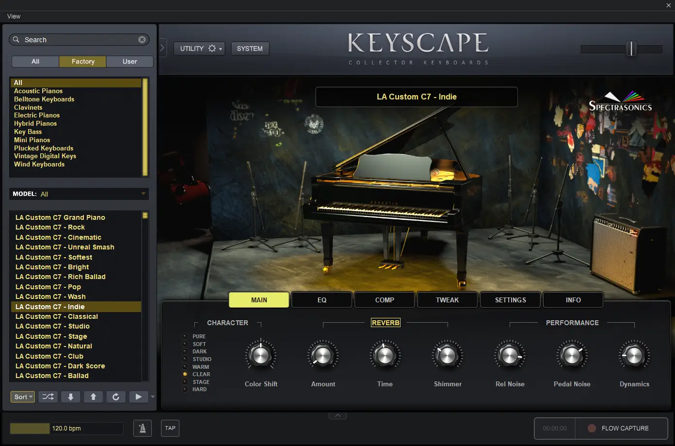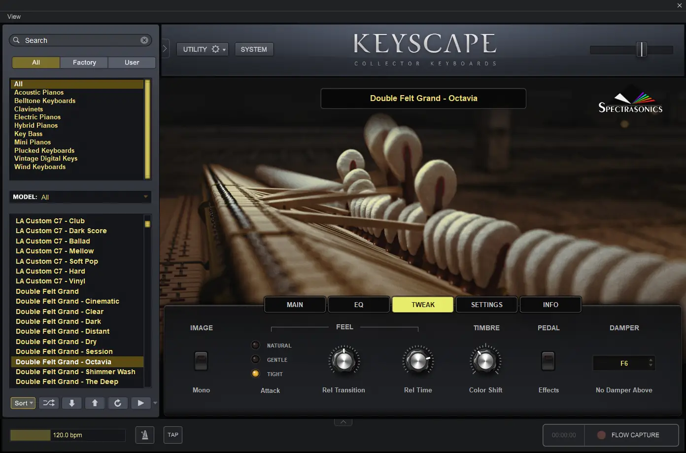 Интерфейс программы интуитивно понятен и ориентирован на быстрый доступ к звукам и настройкам. Каждый патч сопровождается набором элементов управления: регулировка тембра, динамического диапазона, эффектов и маршрутизации. Встроенные эффекты, такие как реверберация, хорус и дисторшн, адаптированы под конкретные инструменты, что позволяет добиться идеального звучания без внешней обработки. Функция Flow Capture™ позволяет одновременно записывать MIDI, аудио и собственные .keyscape-файлы, сохраняя спонтанные творческие идеи в полном объёме. Программа поддерживает формат vst, что обеспечивает совместимость с большинством современных цифровых аудиостанций. Для пользователей Omnisphere 2 доступна интеграция напрямую через браузер, где Keyscape появляется как отдельная библиотека, что упрощает использование звуков в сложных проектах.