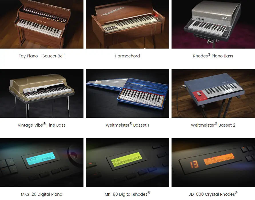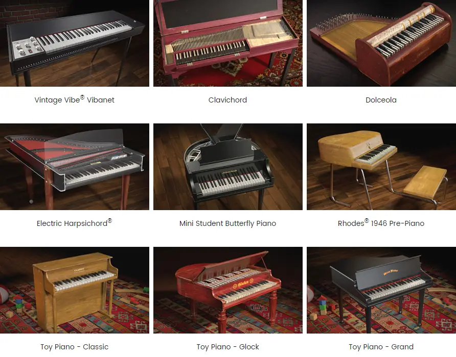 - Огромная коллекция уникальных клавишных с глубоким сэмплированием и детализацией.