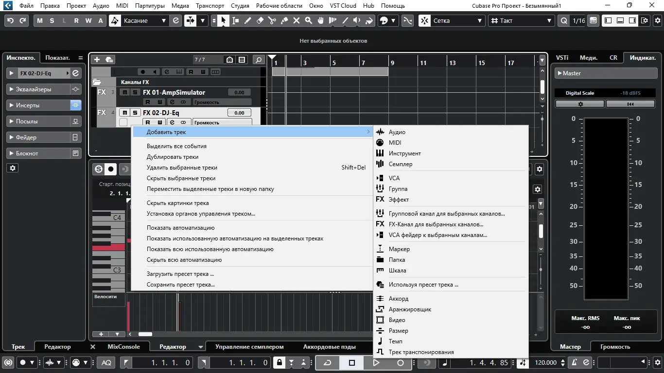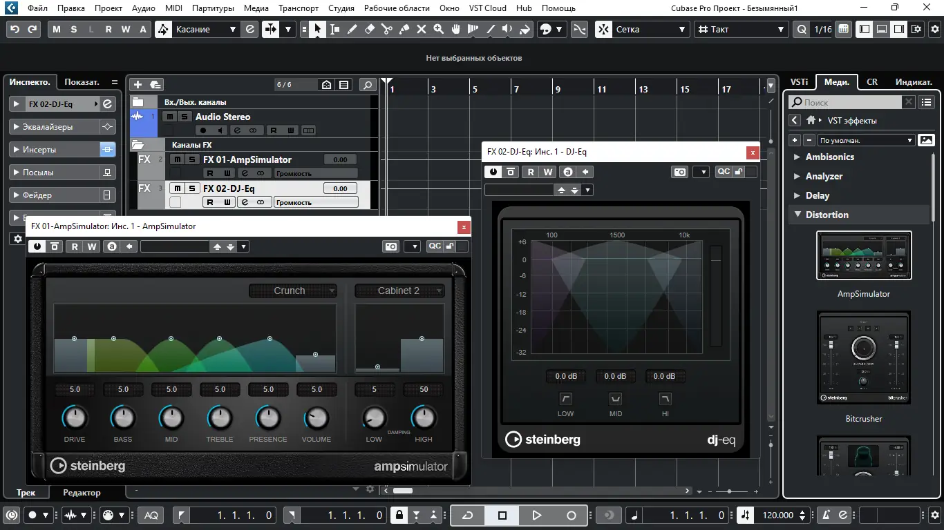 - Встроенные эффекты, виртуальные инструменты и система маршрутизации сигналов