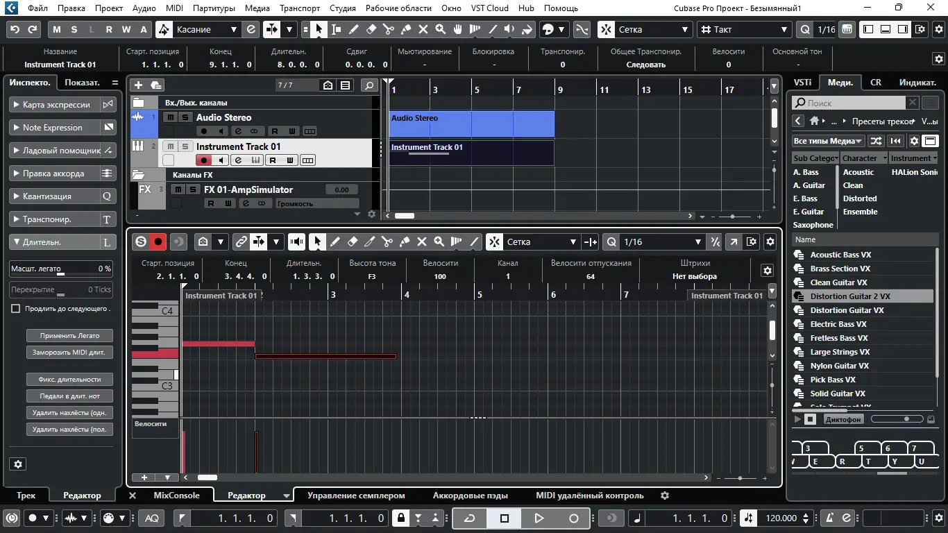 При запуске Cubase открывается интерфейс с проектной областью, панелью дорожек и инструментами навигации. Пользователь может импортировать аудиофайлы, создавать MIDI-регионы, настраивать темп и метроном. Редактирование осуществляется через встроенные инструменты: VariAudio для коррекции высоты тона, Audio Warp для временной коррекции, а также MIDI-редактор с функцией конвертации в аудио. Интеграция с MIDI-контроллерами происходит автоматически благодаря поддержке скриптов MIDI Remote Scripts. Для динамической обработки доступны новые плагины — Raiser и FX Modulator, позволяющие управлять громкостью и создавать модуляционные эффекты. Благодаря режиму сайдчейна и групповому редактированию, обработка нескольких дорожек становится более эффективной. Работа с сеткой выравнивания с точностью до миллисекунды помогает добиться идеальной синхронизации.