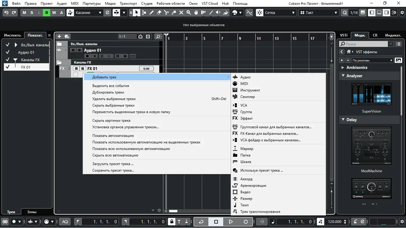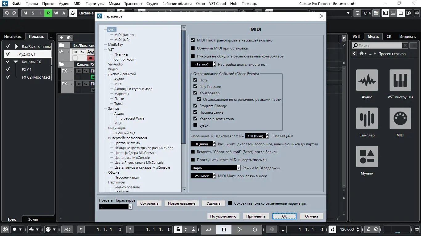 Работа с Cubase начинается с создания нового проекта, выбора параметров аудиоинтерфейса и настройки дорожек. Пользователь может добавлять аудио- и MIDI-регионы, применять эффекты, настраивать маршрутизацию сигналов и использовать виртуальные инструменты. Редакторы VariAudio и Sample Editor позволяют детально обрабатывать аудиоматериал, изменяя темп, высоту тона и форму сигнала. Для управления параметрами в реальном времени доступна поддержка MIDI-контроллеров с автоматическим распознаванием устройств. Автоматизация громкости, панорамы и эффектов помогает добиться профессионального звучания.