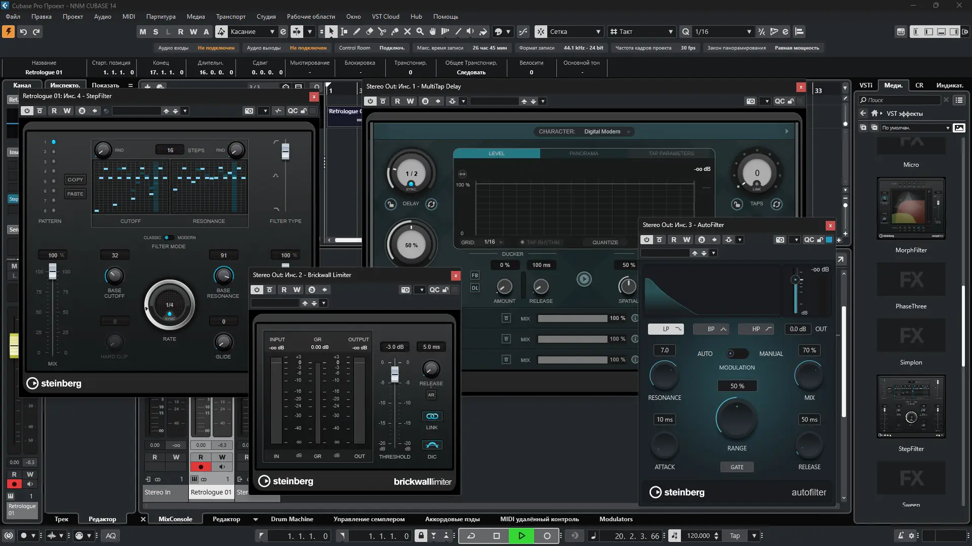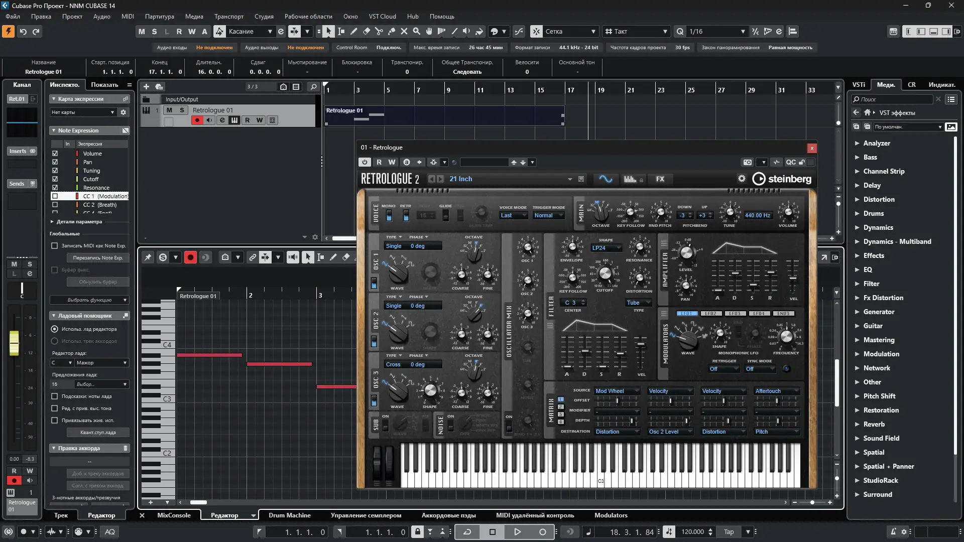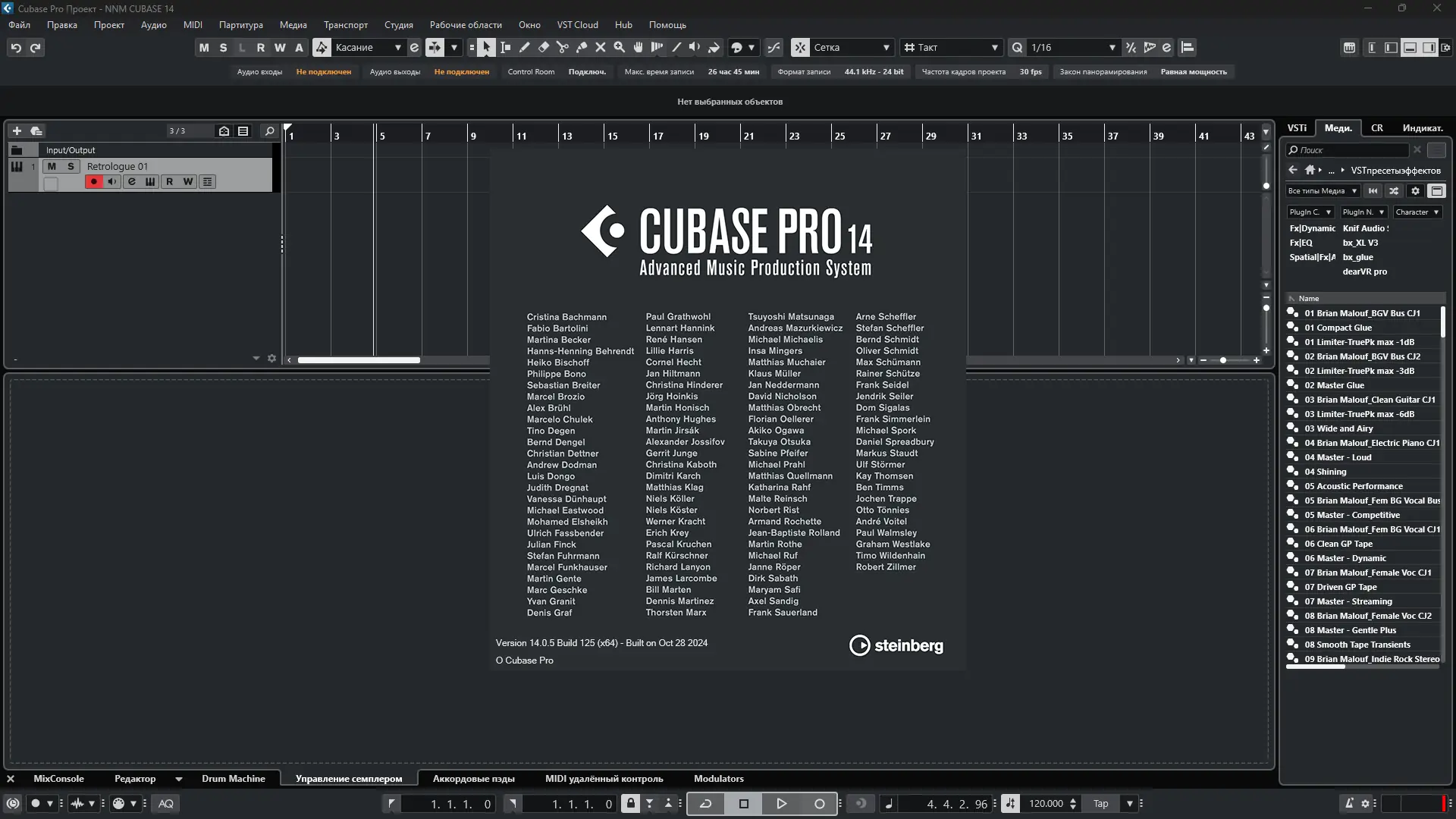 Steinberg Cubase — это одна из самых востребованных цифровых аудио рабочих станций в индустрии. Программа разработана для комплексной работы с музыкальными проектами: от первоначальной идеи до финального микширования и мастеринга. Её архитектура обеспечивает стабильность при работе с большим количеством треков, виртуальных инструментов и эффектов. Cubase поддерживает широкий спектр форматов, включая VST3, и интегрируется с аппаратными решениями Steinberg, такими как audio interface ur22c, ur12 и ur22, обеспечивая низкие задержки и чистый звук.