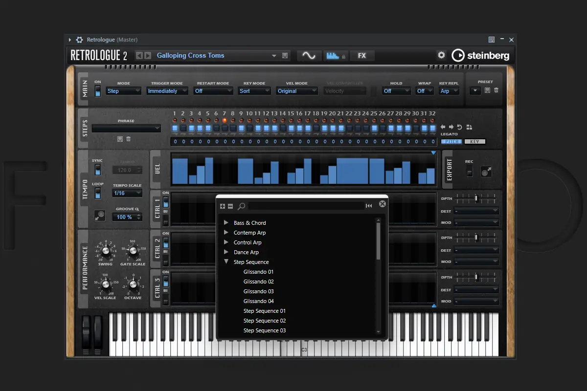 Использование Retrologue 2 начинается с выбора одного из сотен пресетов, охватывающих широкий спектр жанров и стилей — от классических басов и пэдов до современных перкуссий и экспериментальных текстур. Интерфейс построен интуитивно: основные секции — осцилляторы, фильтры, огибающие, LFO и эффекты — организованы в логическом порядке, что ускоряет процесс саунд-дизайна. Для создания динамических последовательностей используется 32-шаговый арпеджиатор, который можно экспортировать непосредственно в хост-программу, сохраняя мелодические идеи без переключения между окнами.