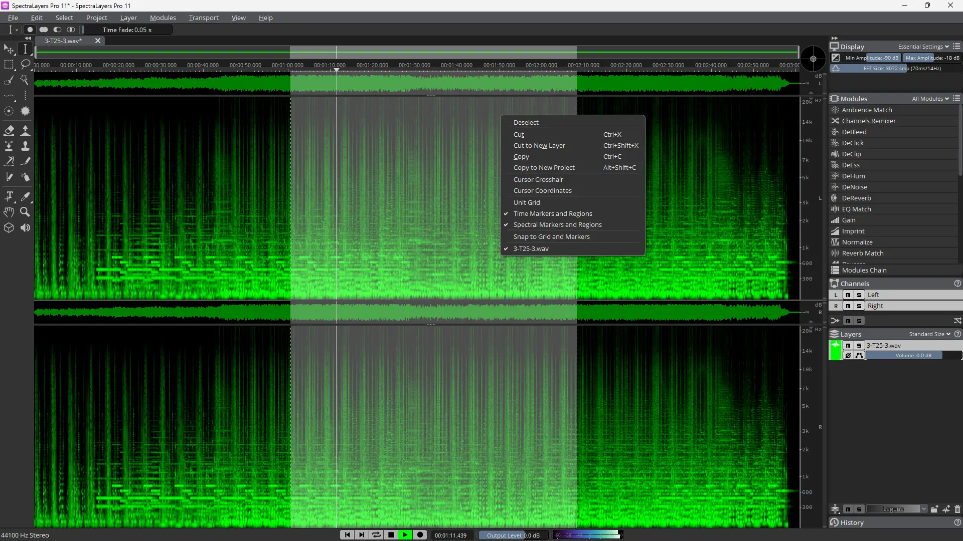 SpectraLayers представляет собой специализированный аудиоредактор, ориентированный на спектральную обработку звука. В отличие от традиционных цифровых аудиостанций, где редактирование ведётся по временной шкале, здесь звук отображается в виде спектрограммы, где по оси X отложено время, по оси Y — частота, а яркость указывает на уровень громкости. Это позволяет визуально выделять и манипулировать отдельными компонентами звукового сигнала, такими как голоса, инструменты или шумы. Программа активно используется в музыкальной индустрии, звуковом дизайне, реставрации архивных записей и постпродакшене.